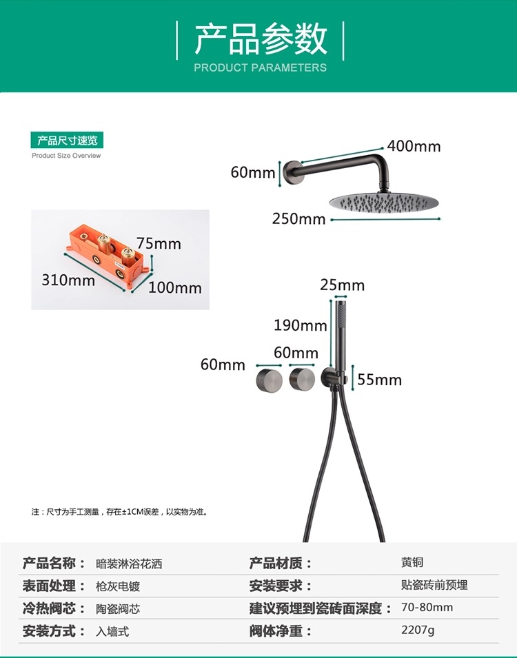 냉기와 뜨거운 샤워 세트 임베디드 샤워 화장실 가정용 샤워 숨겨진 유형을위한 국경 최소 플랫