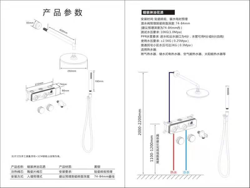 냉기와 뜨거운 샤워 세트 임베디드 샤워 화장실 가정용 샤워 숨겨진 유형을위한 국경 최소 플랫스토어 가기