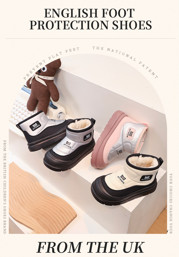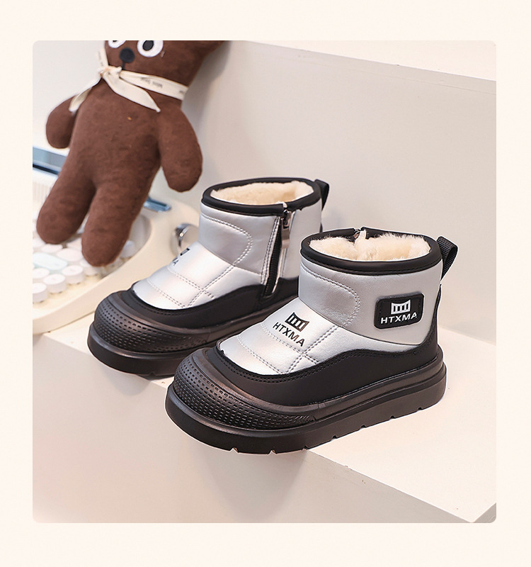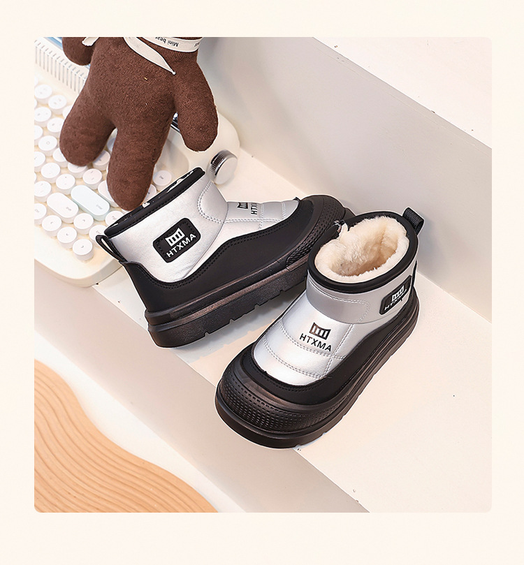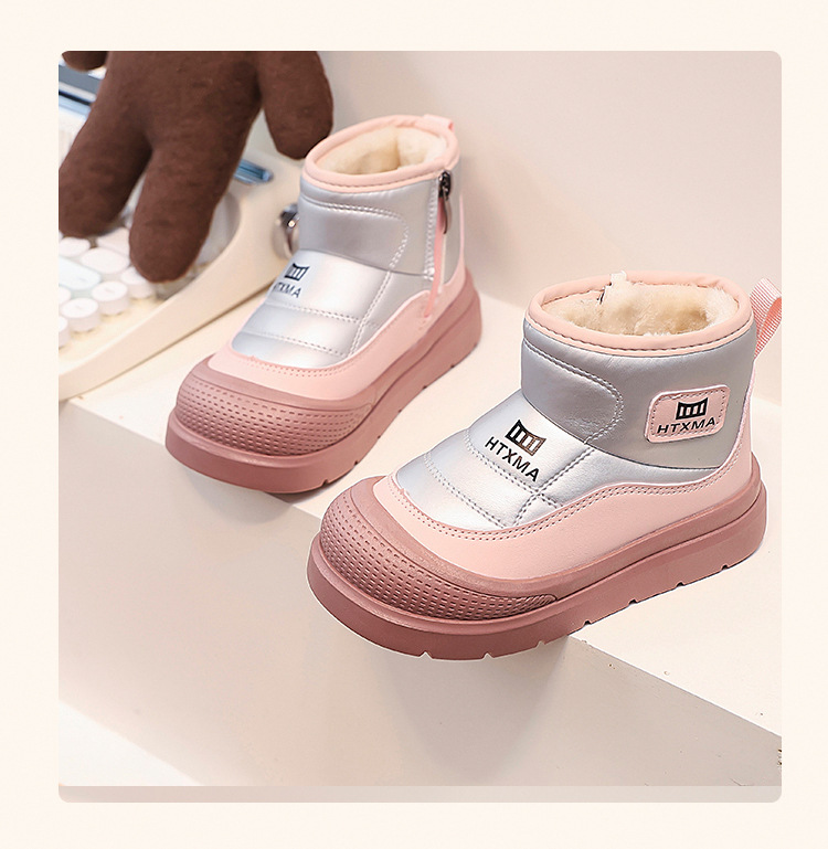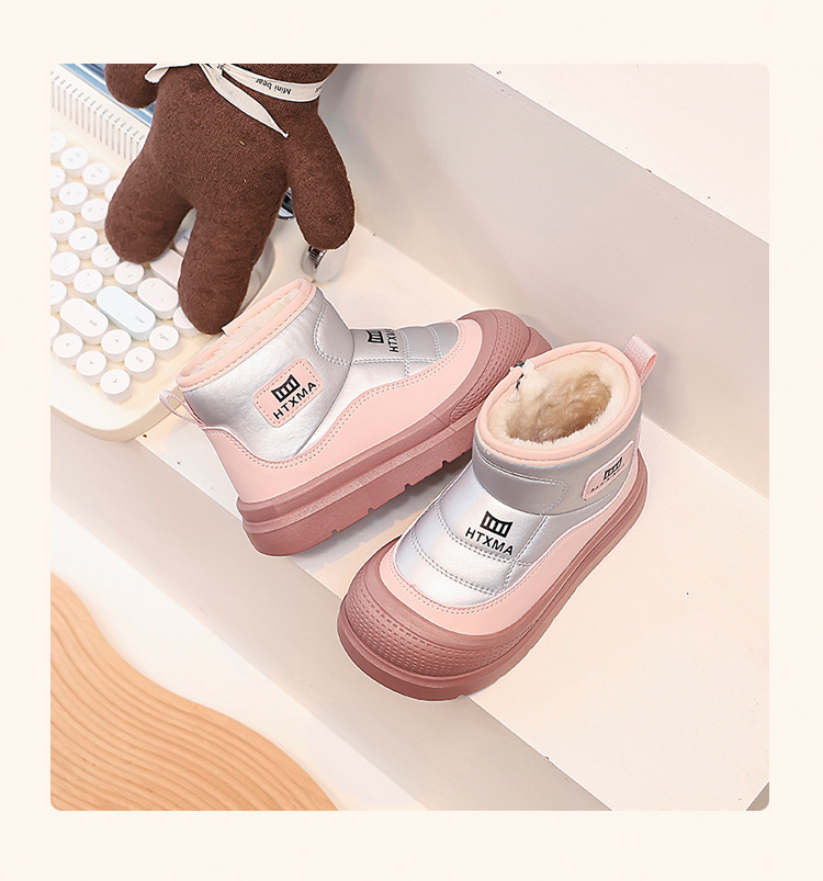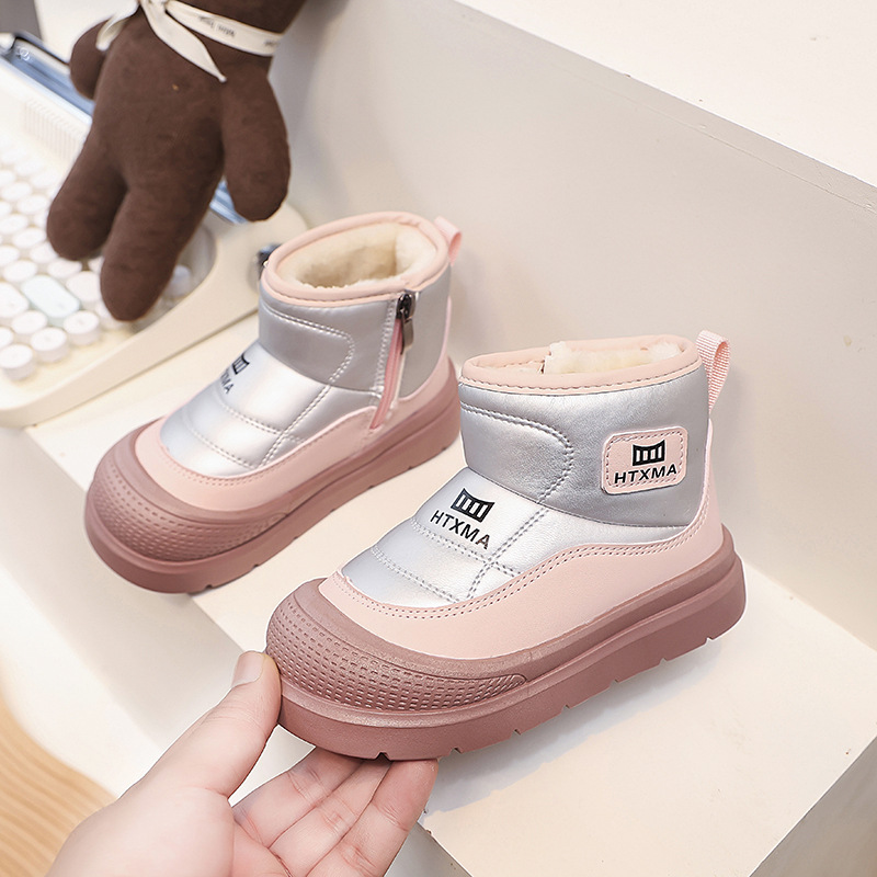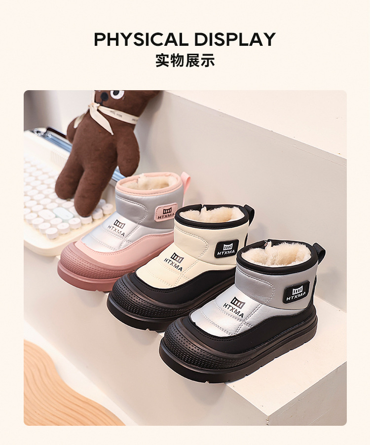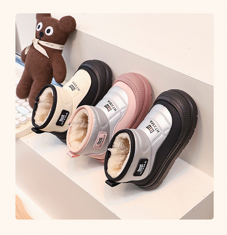 어린이용 스노우 부츠 2025 겨울 신상품, 벨벳 안감과 두꺼운 소재로 중대형 어린이 남녀 보호용 면화 신발, 따뜻한 면화 부츠스토어 가기