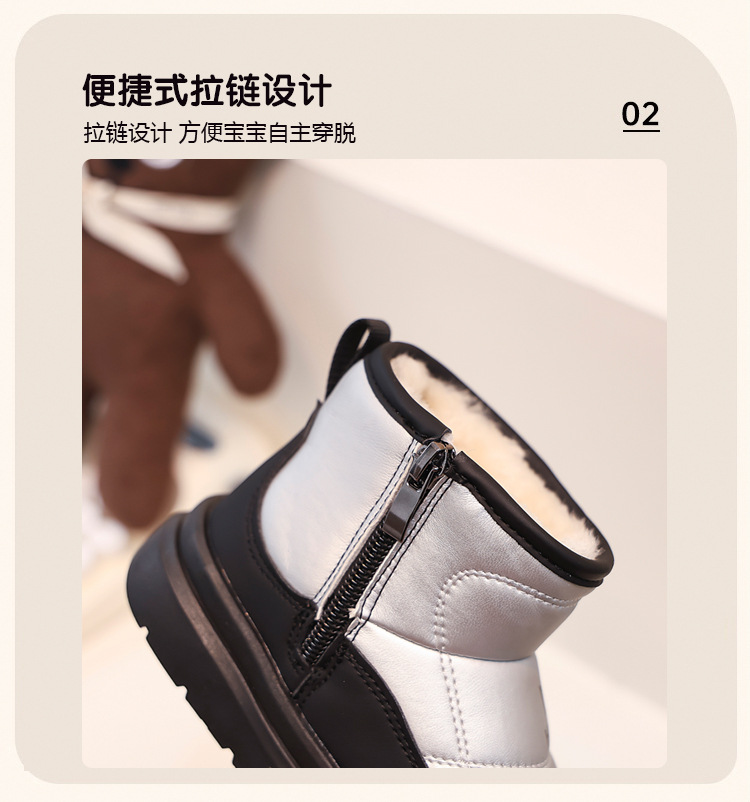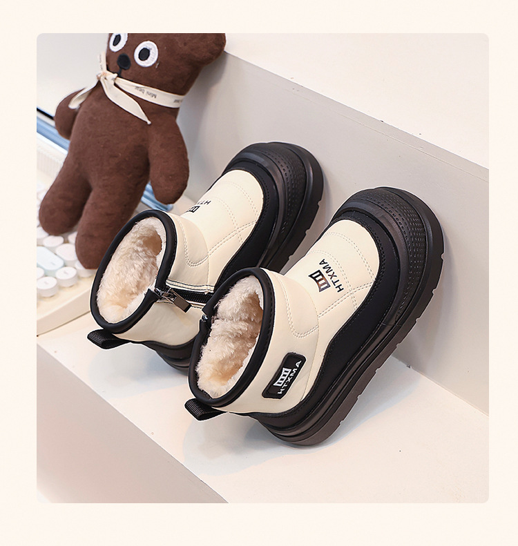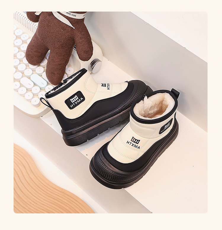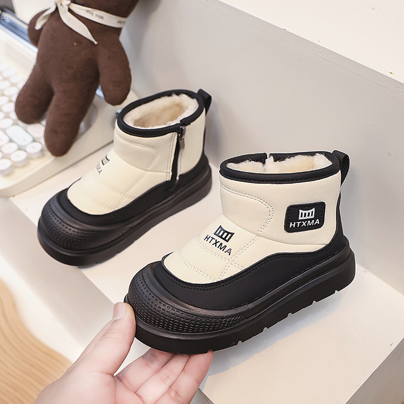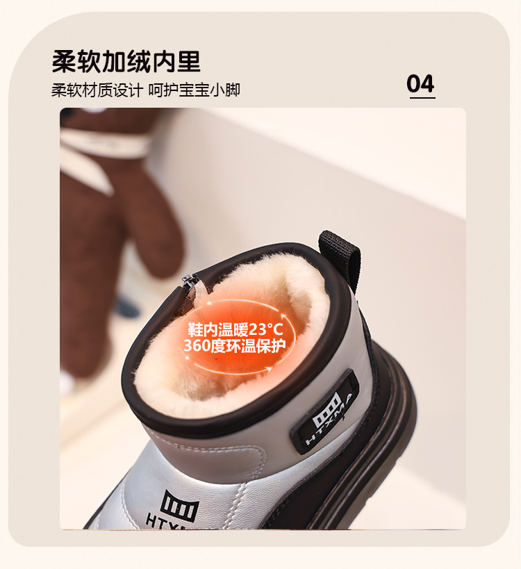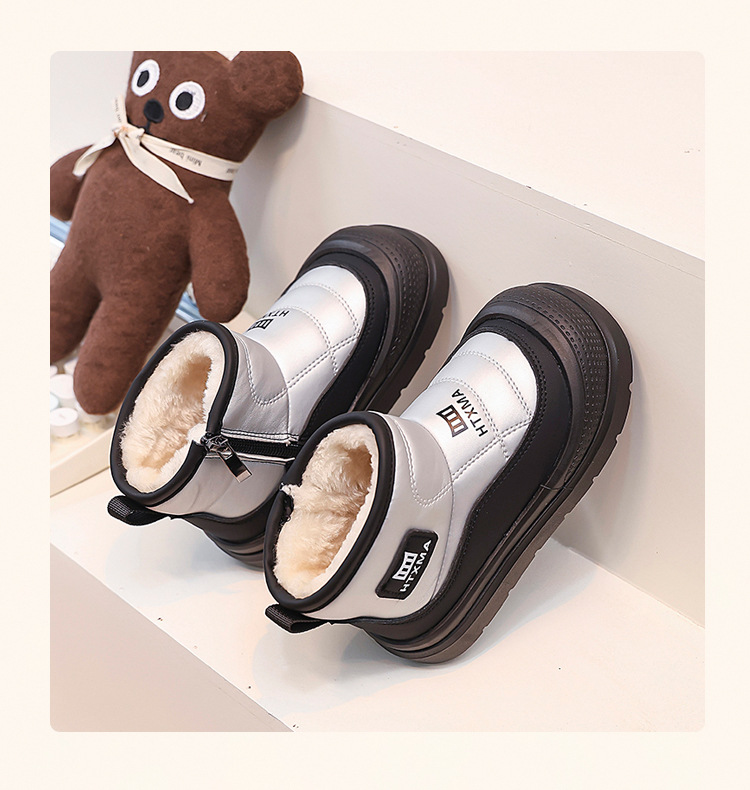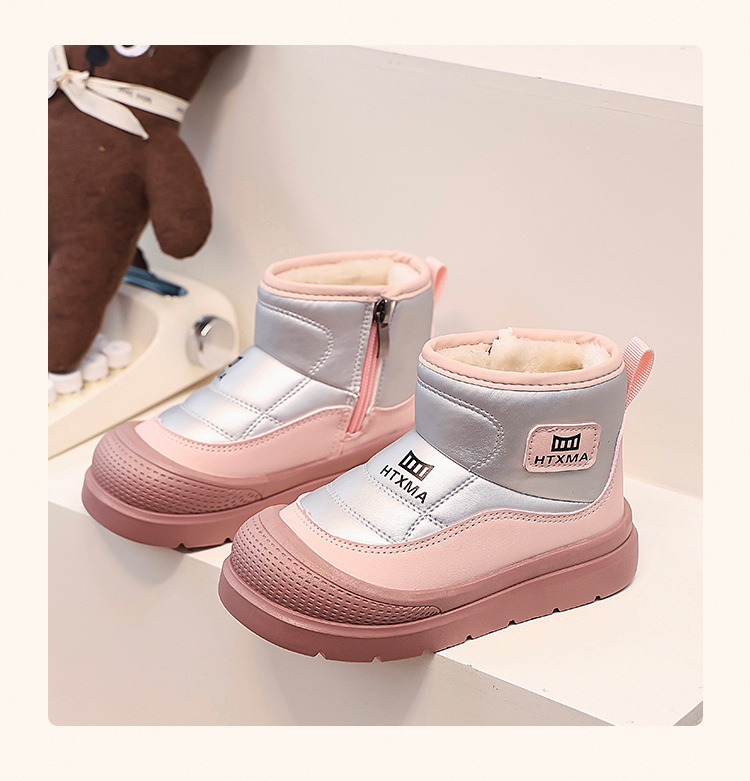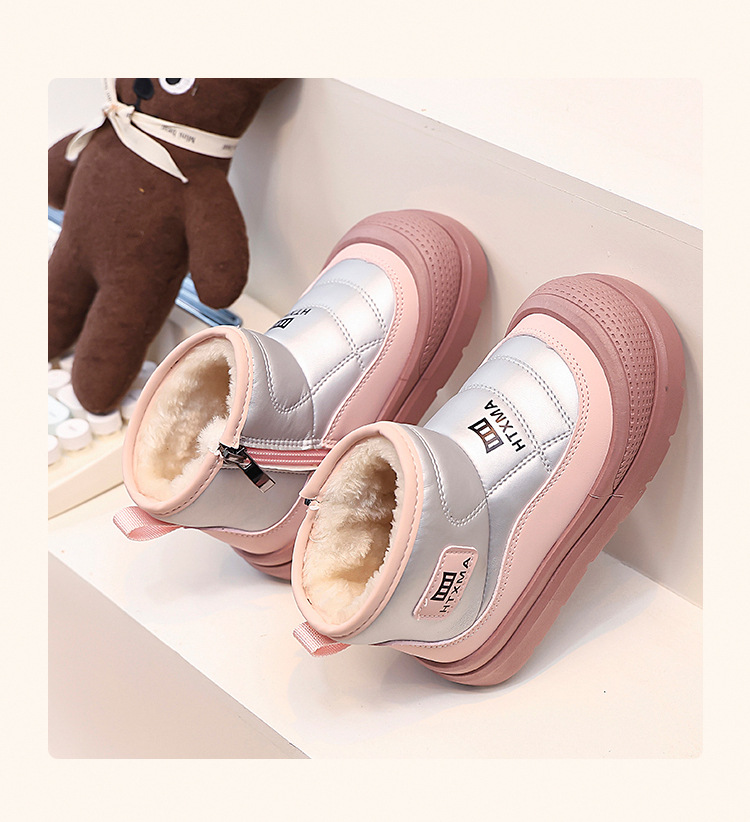 어린이용 스노우 부츠 2025 겨울 신상품, 벨벳 안감과 두꺼운 소재로 중대형 어린이 남녀 보호용 면화 신발, 따뜻한 면화 부츠스토어 가기