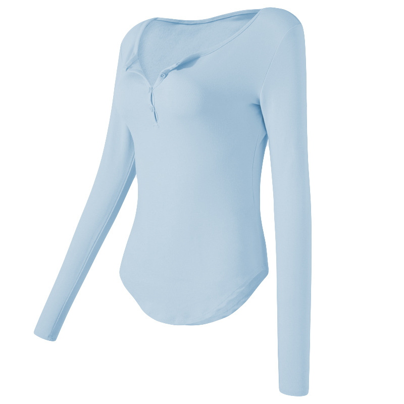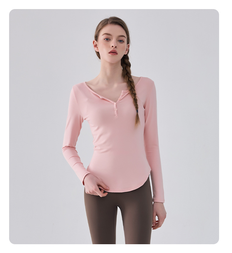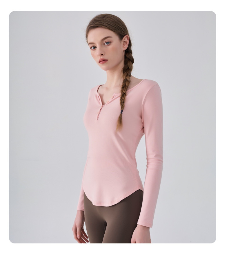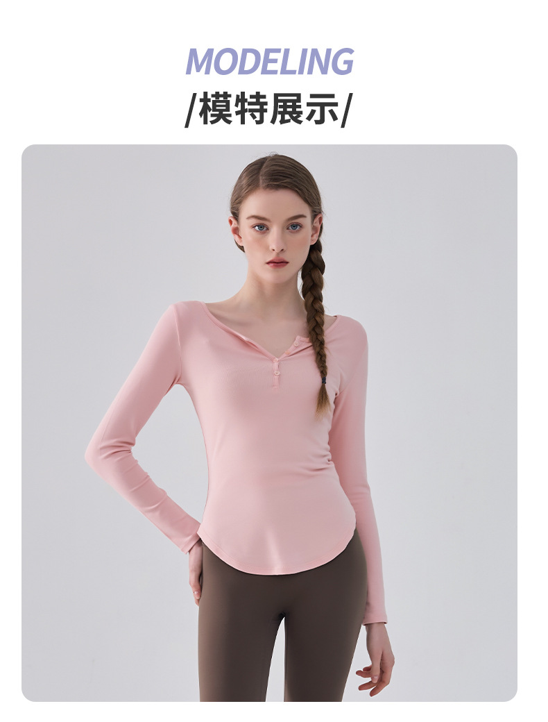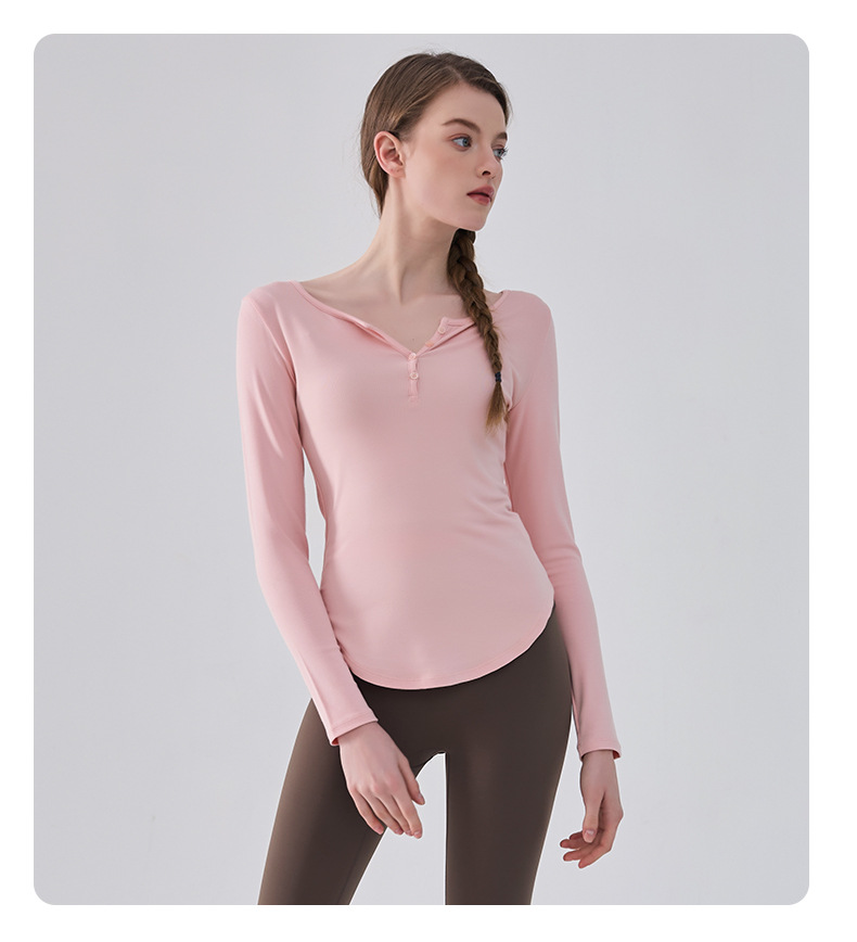국경 간 피트니스 긴팔 여성용 가을과 겨울 슬림핏 타이트 허리 필라테스 러닝 티셔츠 버튼베이스 셔츠 요가 옷스토어 가기