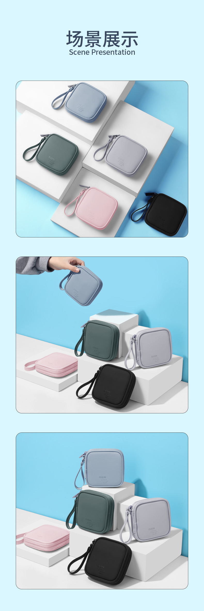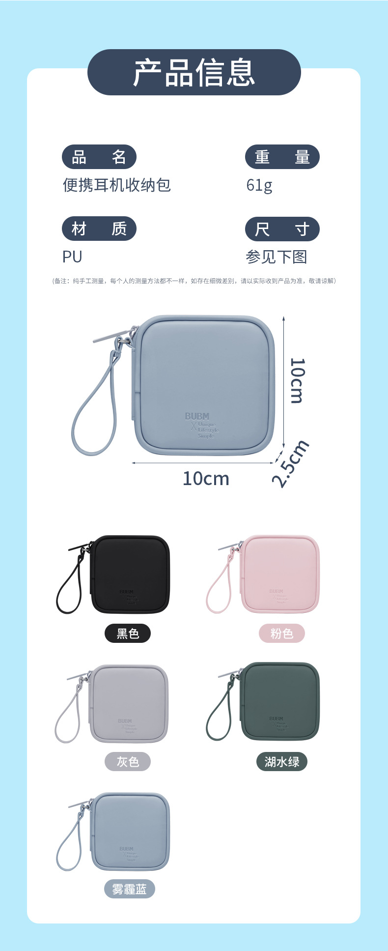 소스 공장 솔리드 컬러 경량 헤드폰 가방 대용량 저장 방수 스크래치 방지 PU 디지털 미니 헤드폰 가방스토어 가기