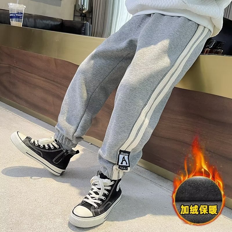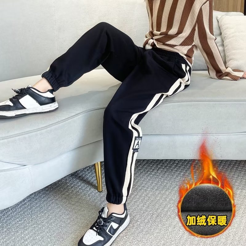 어린이 바지 봄과 가을 2024 새로운 어린이 스포츠 바지 가을 원피스 큰 어린이 캐주얼 바지 가을과 겨울 통합 벨벳 패션