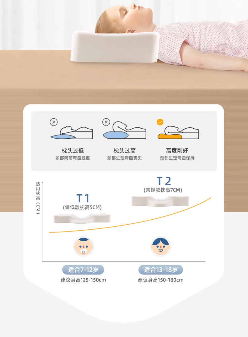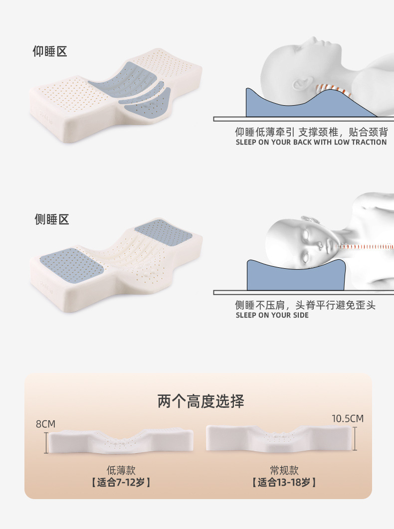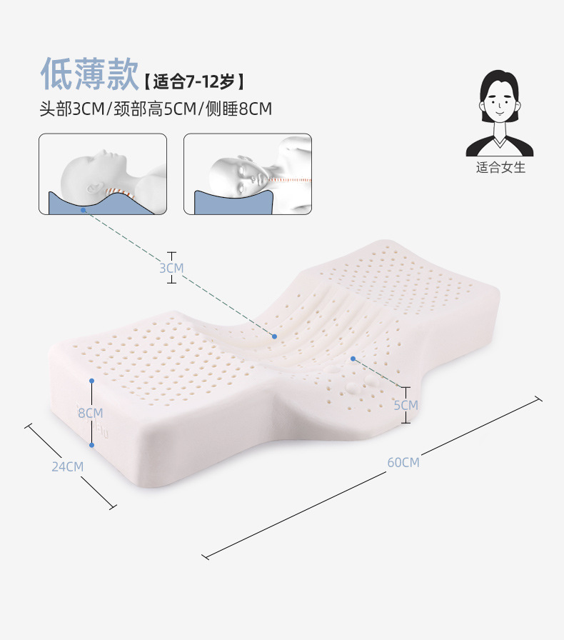 십대 특수 자궁 경부 베개 라텍스 베개 어린이 자궁 경부 척추 보호는 중학생들이 낮은 자연 베개 코어를 수면하는 데 도움이됩니다.