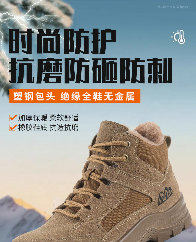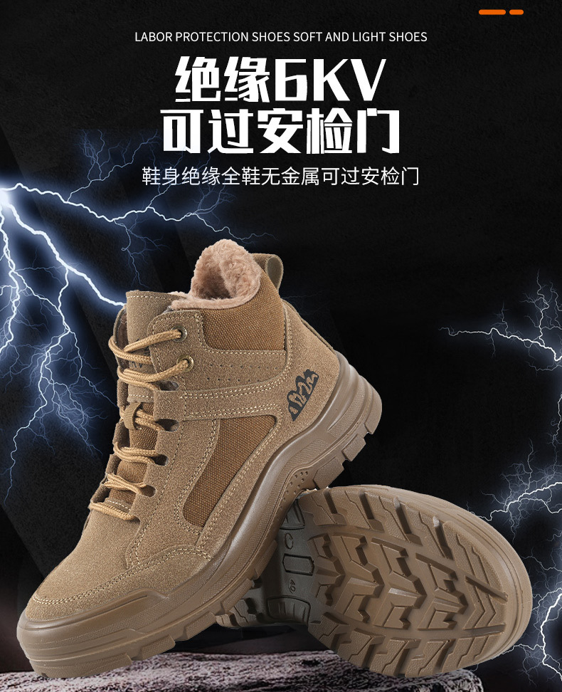 겨울 하이 탑 기모 안전 신발 남성용 스매싱 방지 및 피어싱 방지 절연 6KV Cowhide 작업 신발스토어 가기