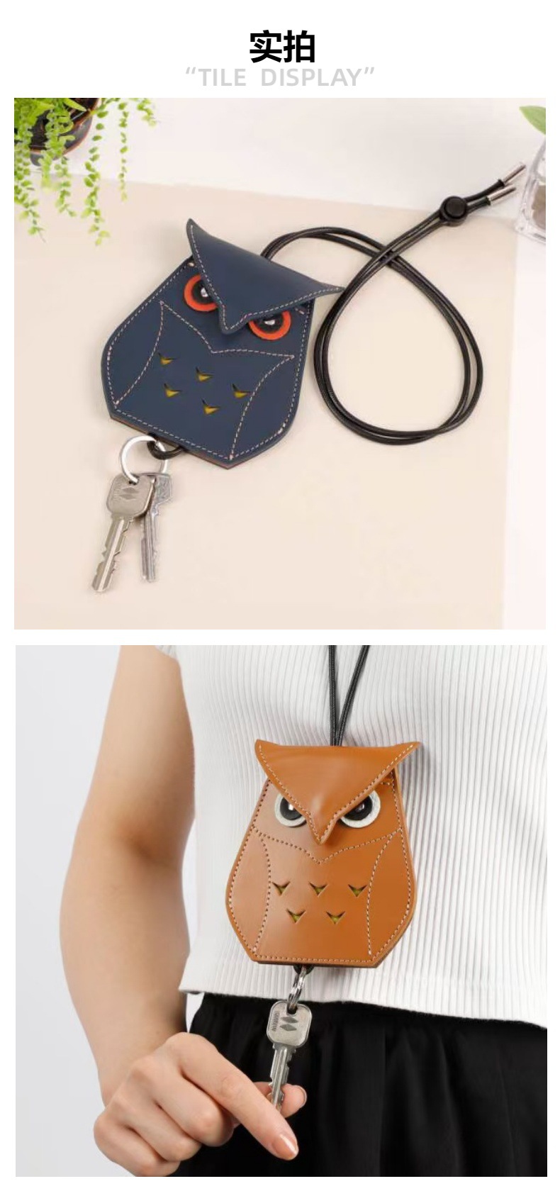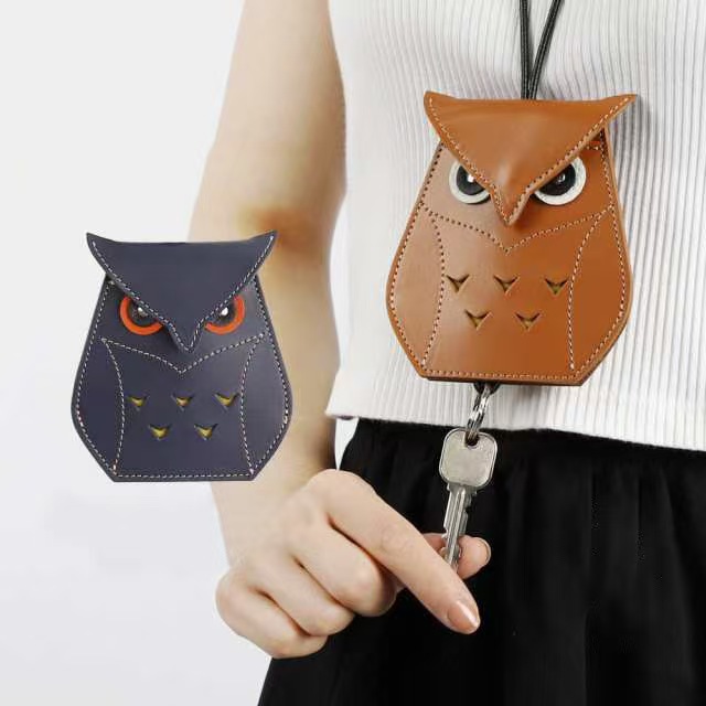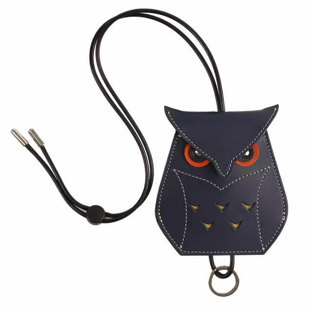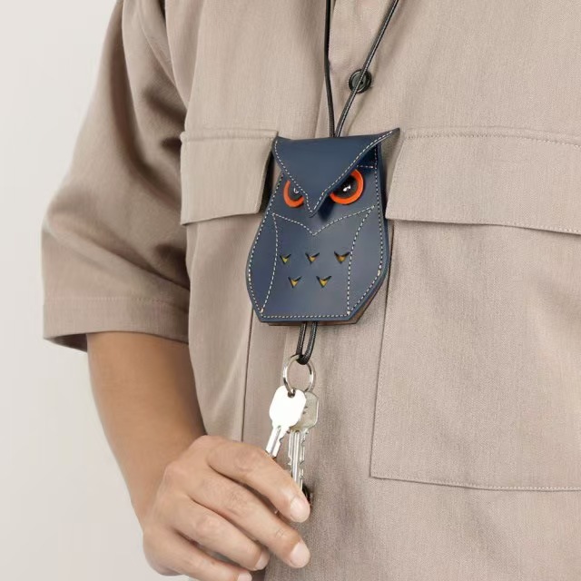 창조적 인 귀여운 올빼미 키 백 펜던트 패션 교수형 목 카드 홀더 카드 홀더 개인화 된 액세스 카드 가죽 홀더