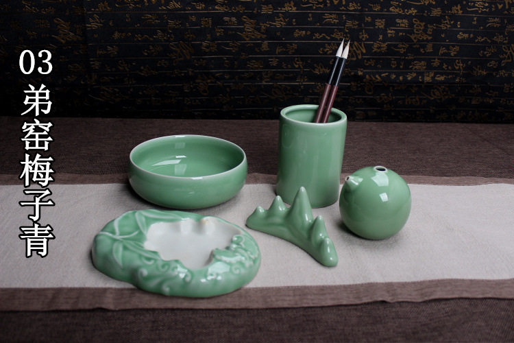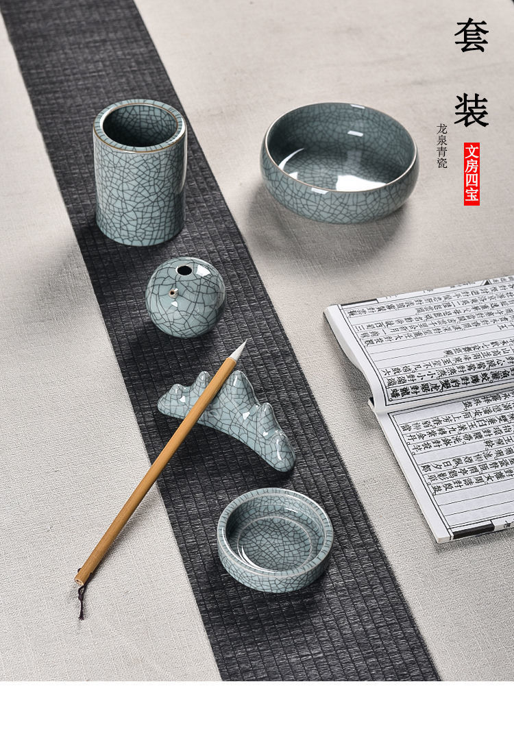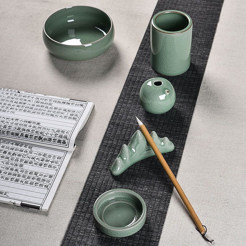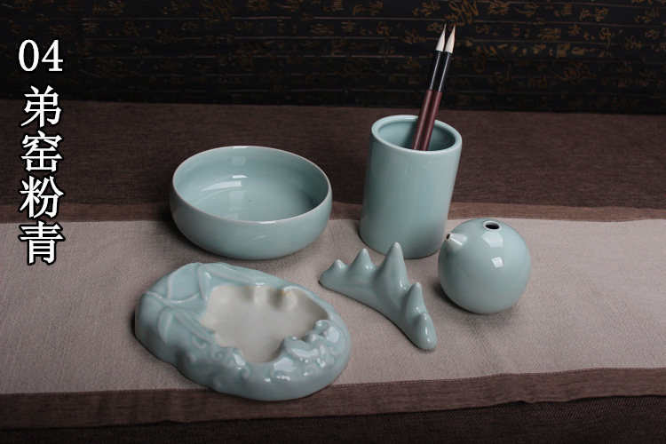 연구의 4 가지 보물 도자기 세라믹 물방울 펜 홀더 펜 세척 펜 홀더 잉크 스톤 세트 조각 세트스토어 가기