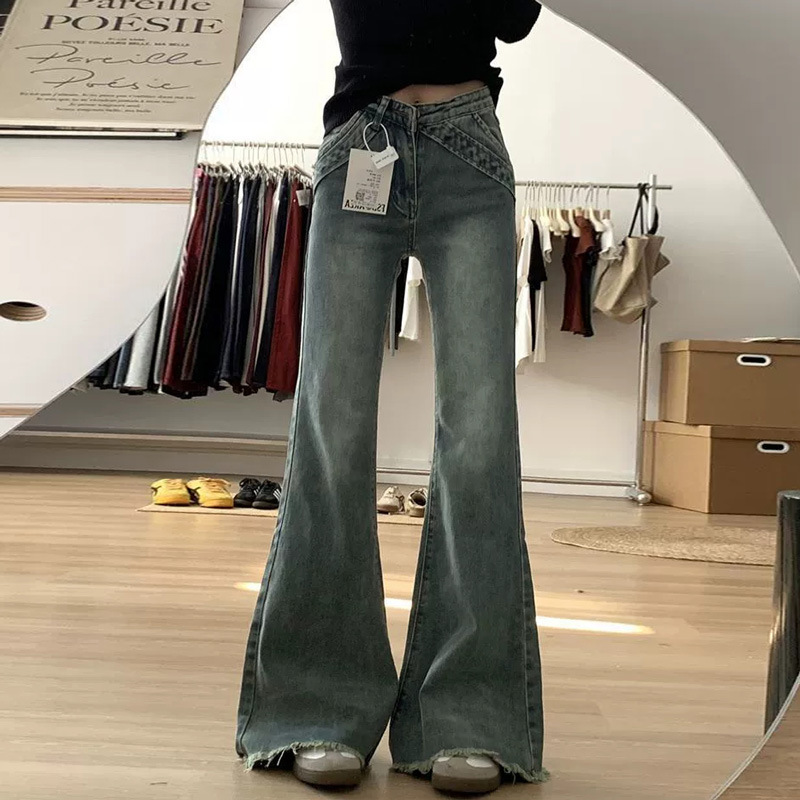미국식 데님 바지 여성용 슬림 핏 스트레치 포켓 스티칭 하이 웨이스트 플라 드 바지 스트레이트 호스 슈 바지스토어 가기