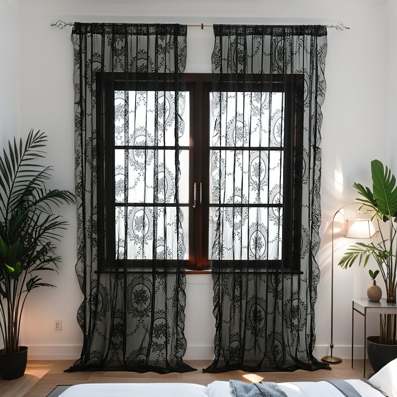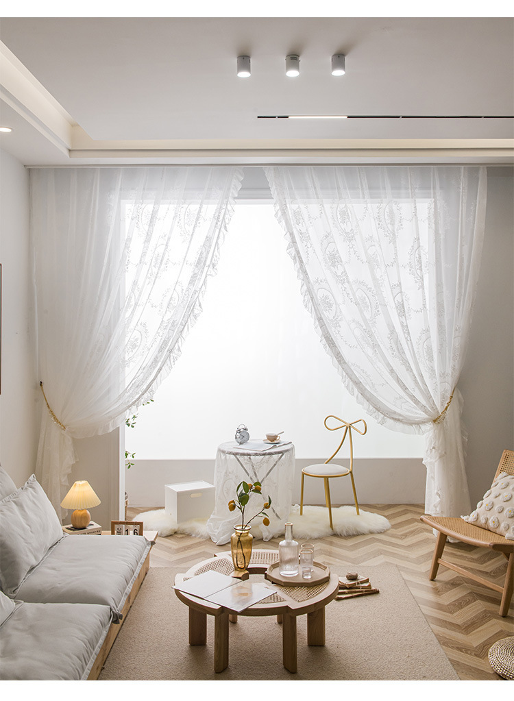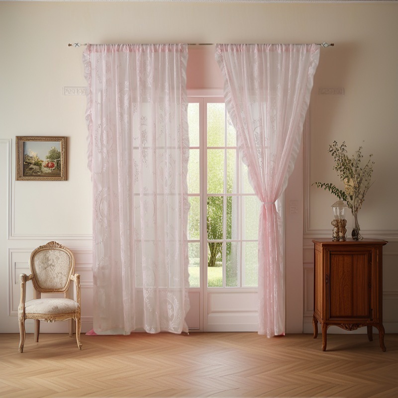 새로운 프랑스 둥근 거울 꽃 커튼 음영 창 화면 착용 막대 레이스 직물 도매 완성 된 거즈 커튼의 천공되지 않은 설치