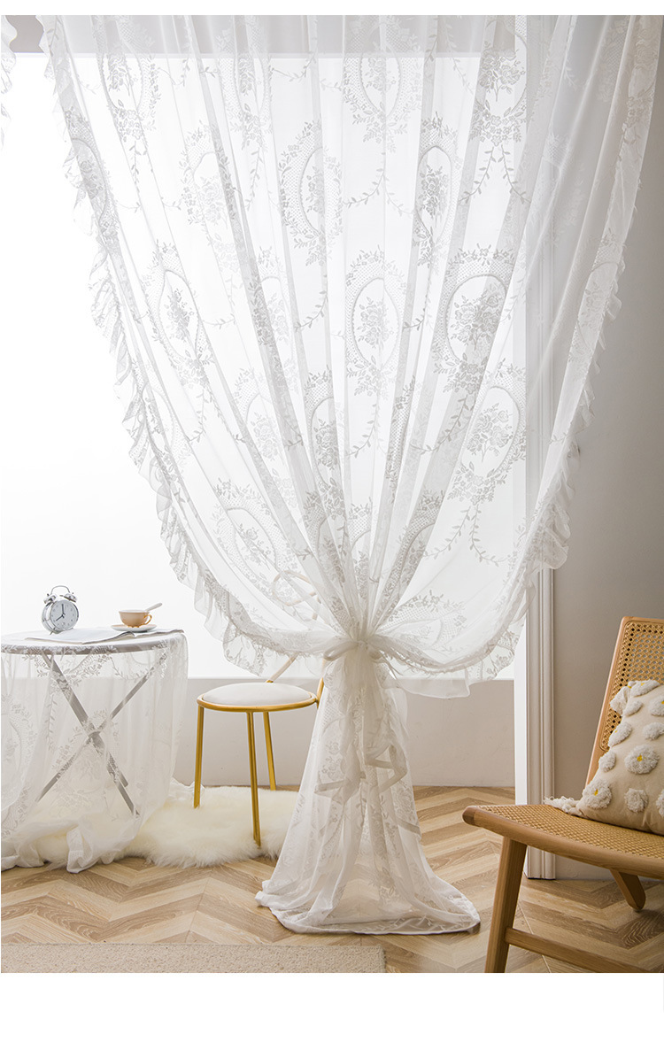 새로운 프랑스 둥근 거울 꽃 커튼 음영 창 화면 착용 막대 레이스 직물 도매 완성 된 거즈 커튼의 천공되지 않은 설치스토어 가기