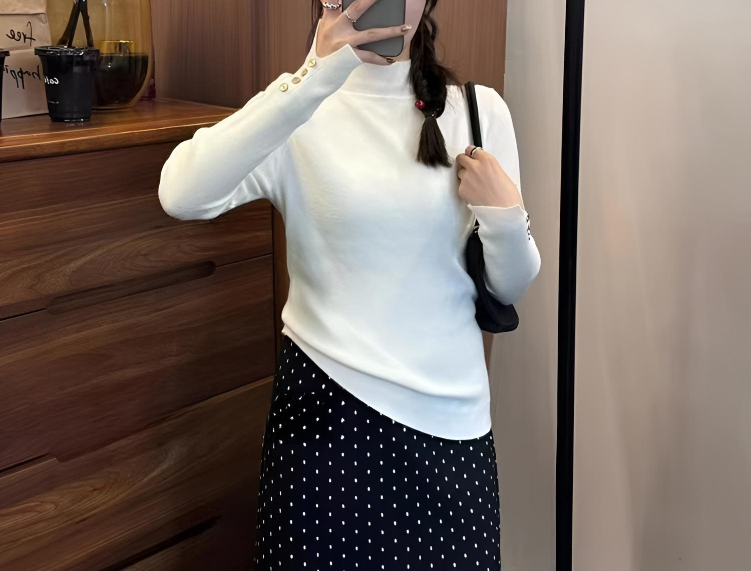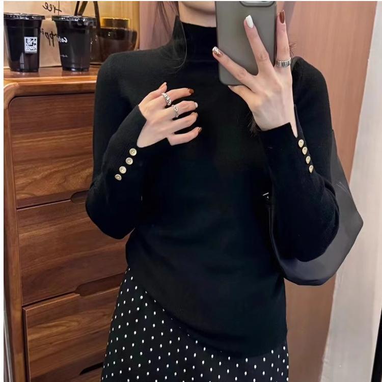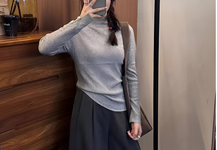 2024 가을과 겨울 간단한 버튼 반 높은 칼라 스웨터 여성베이스 셔츠 탑 다크 그레이 새로운 한국어 버전