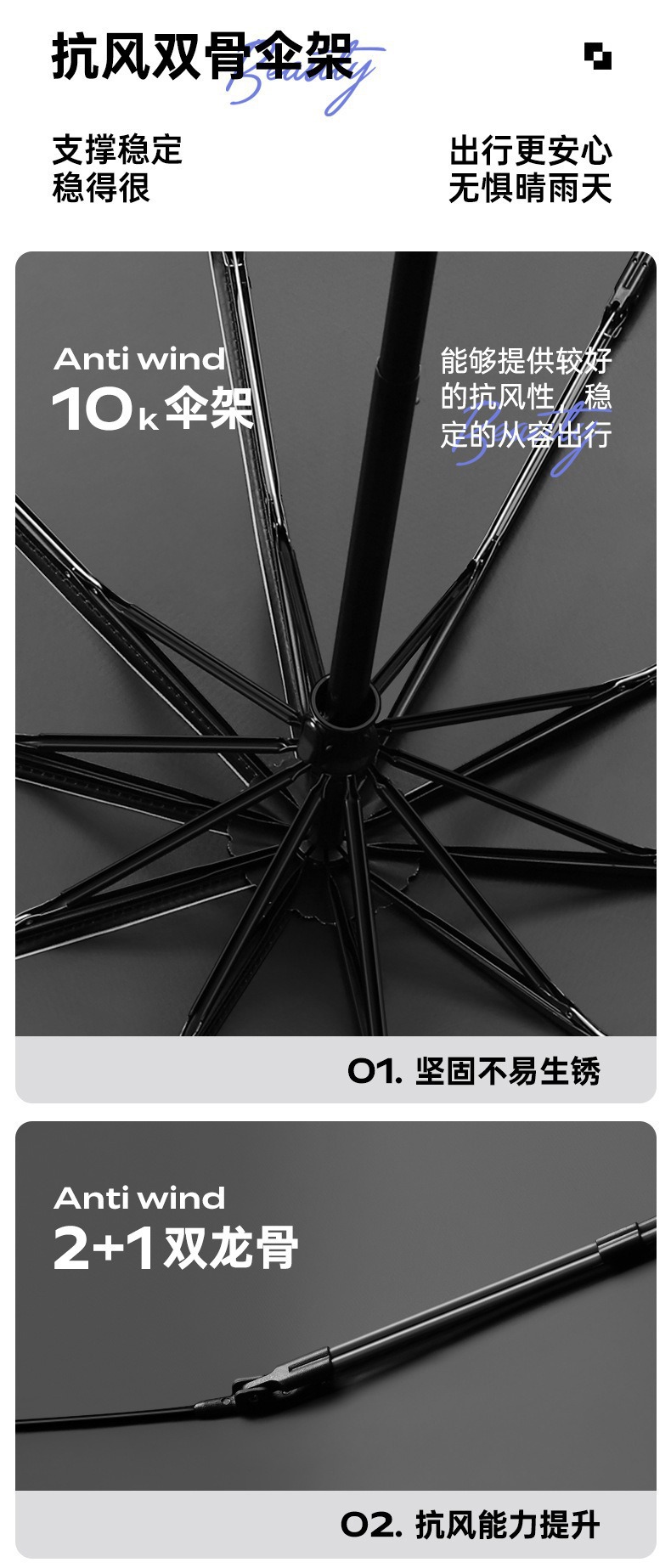 대형 10 뼈 더블 드래곤 뼈 써니 우산 블랙 접착제 맑고 비 이중 사용 바람 방지 두꺼운 솔리드 컬러 비즈니스 3 배 우산스토어 가기