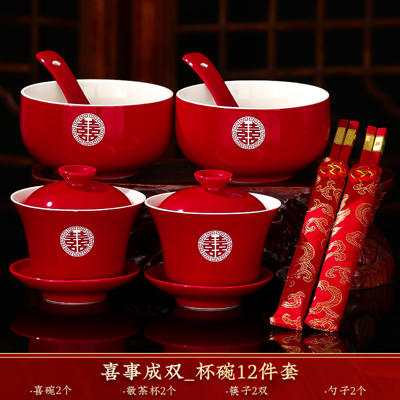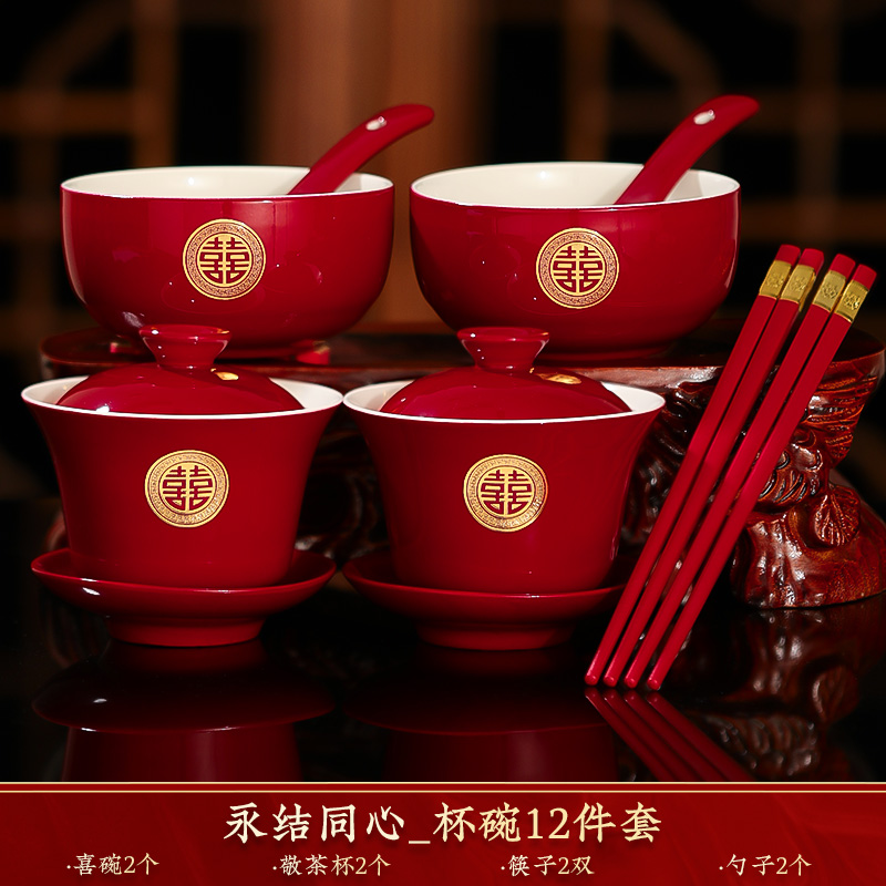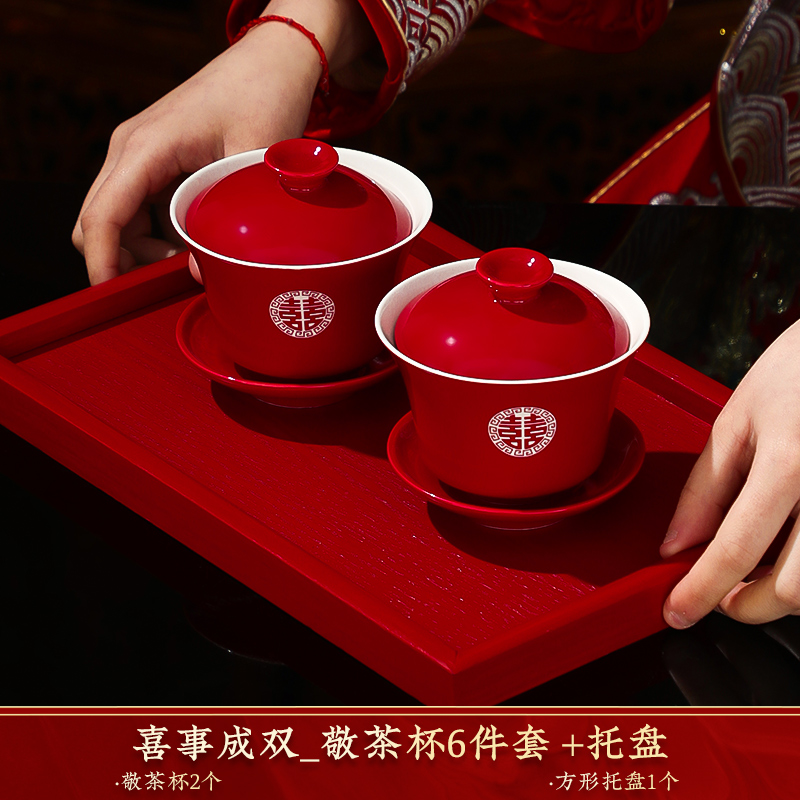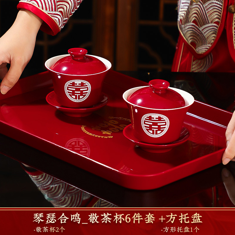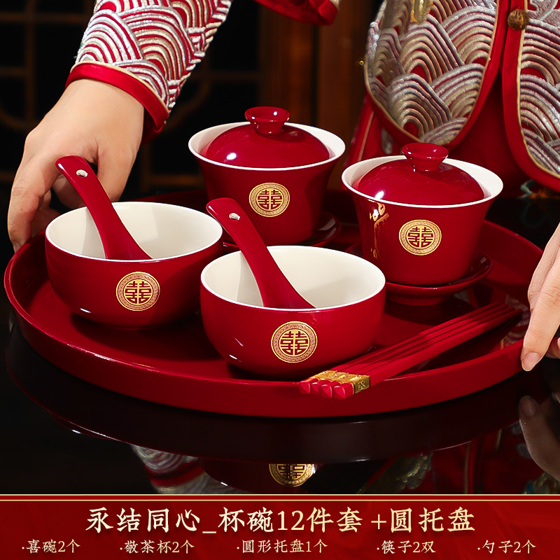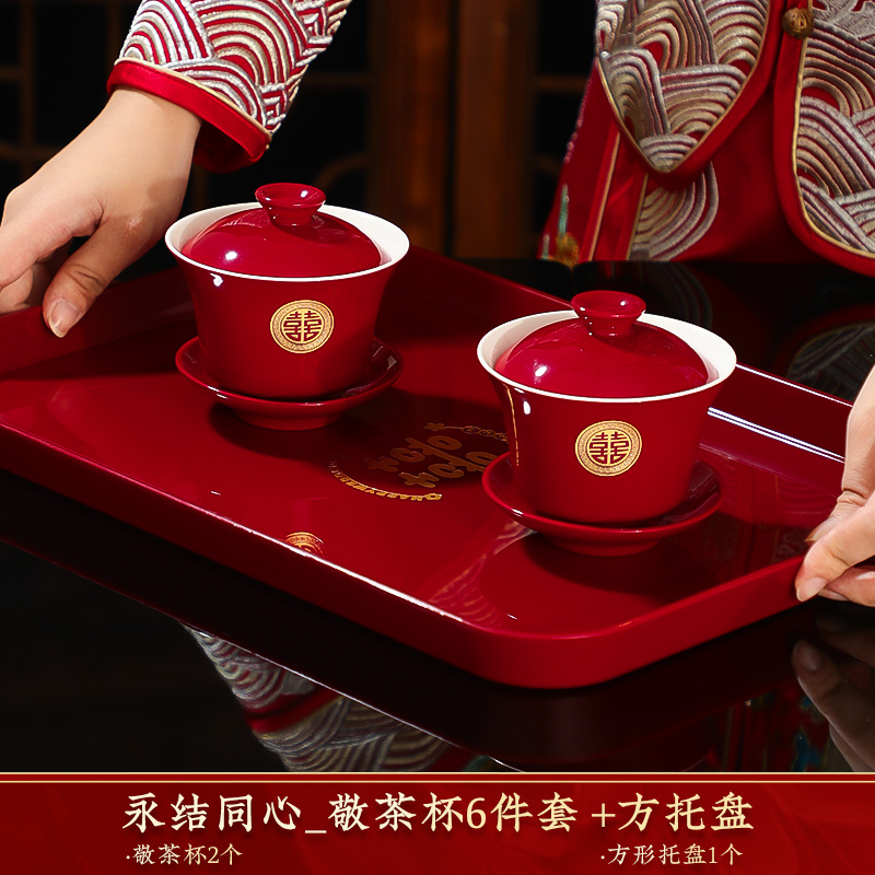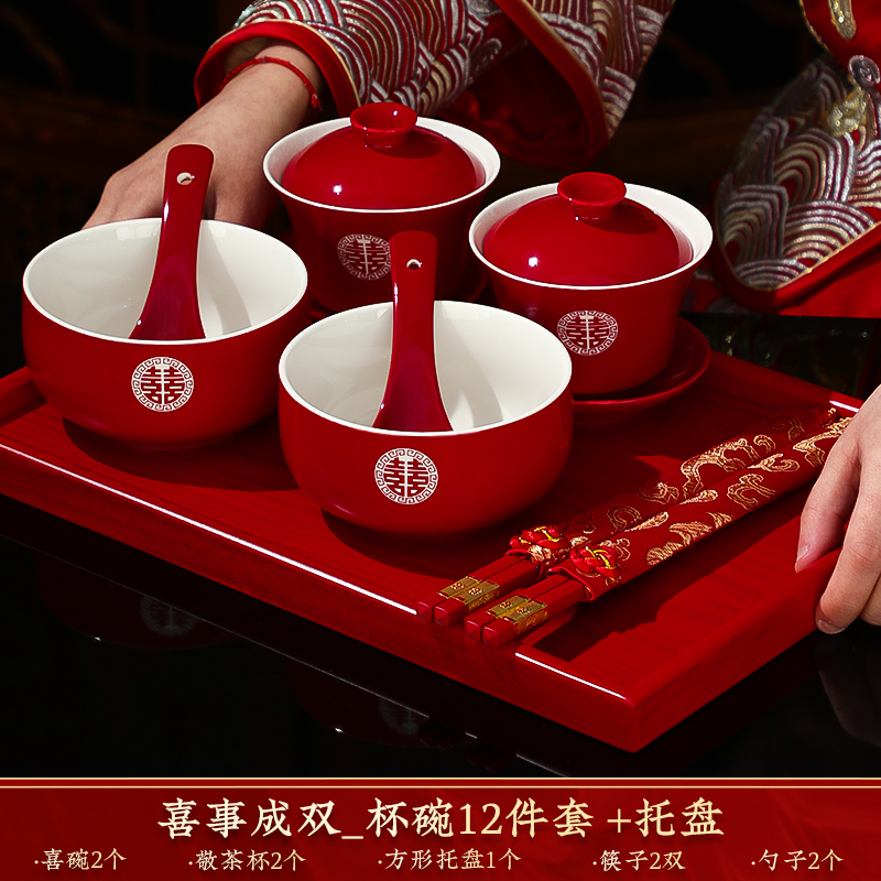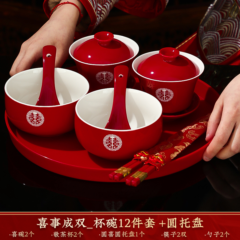 결혼식 용품은 차 컵으로 바뀌 었습니다. 행복한 그릇과 젓가락 컵 웨딩 레드 티 세트 토스트스토어 가기