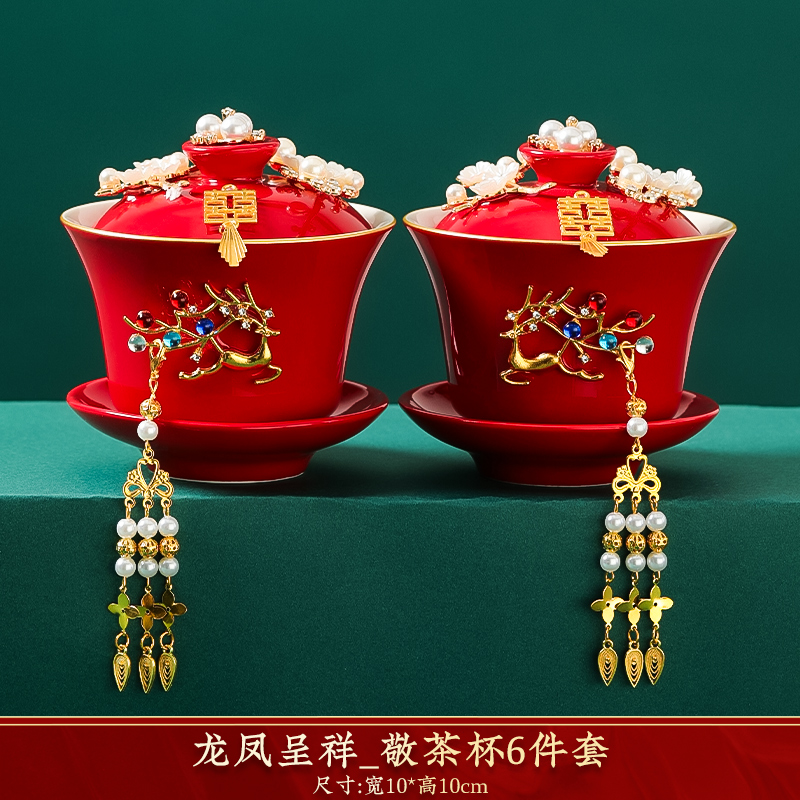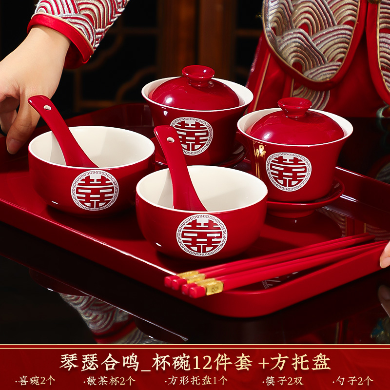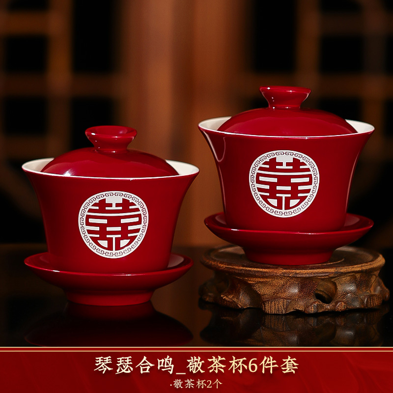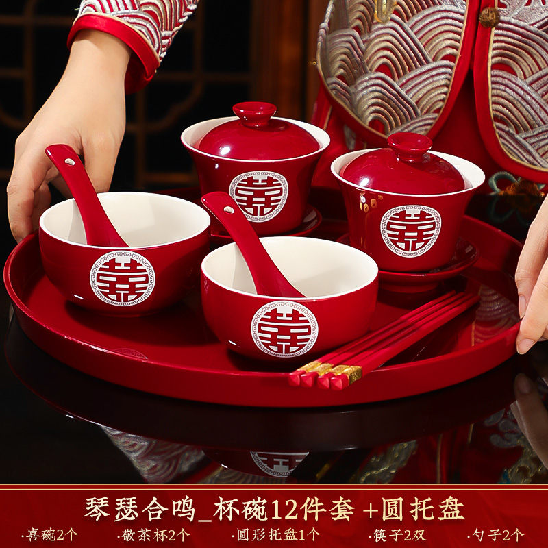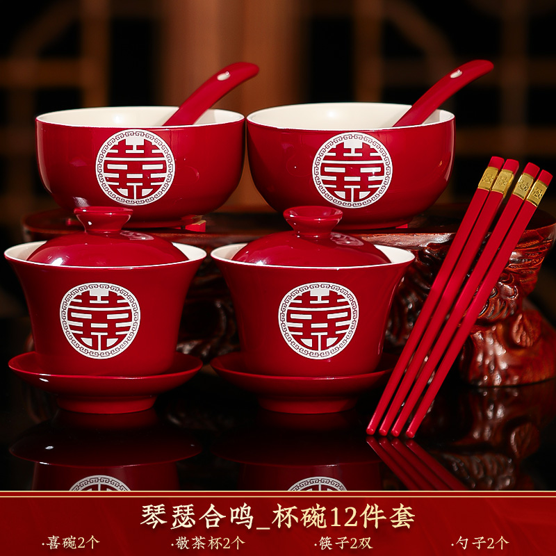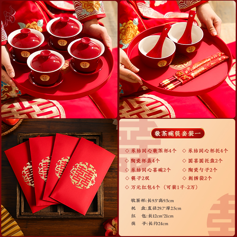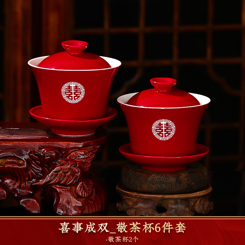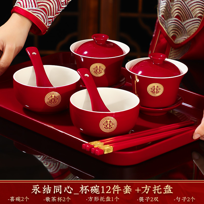 결혼식 용품은 차 컵으로 바뀌 었습니다. 행복한 그릇과 젓가락 컵 웨딩 레드 티 세트 토스트스토어 가기