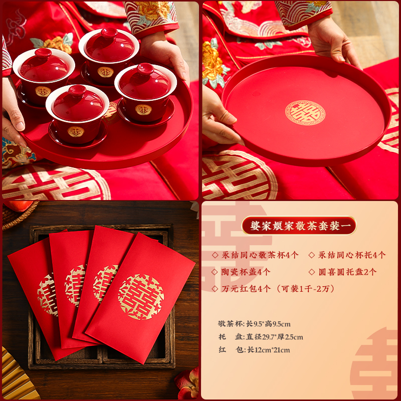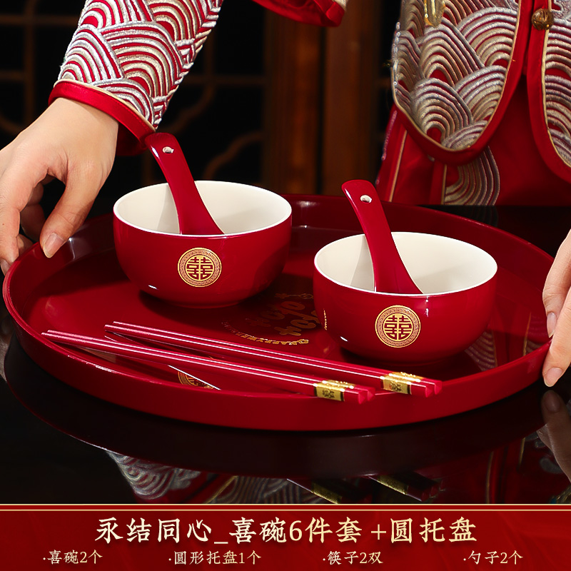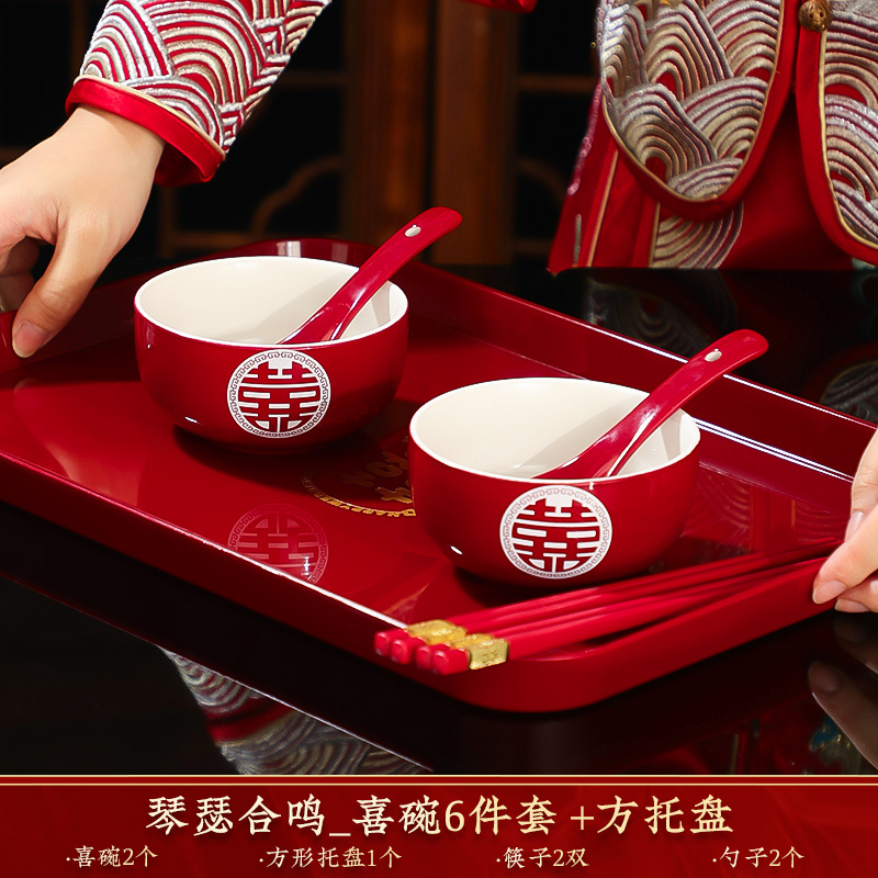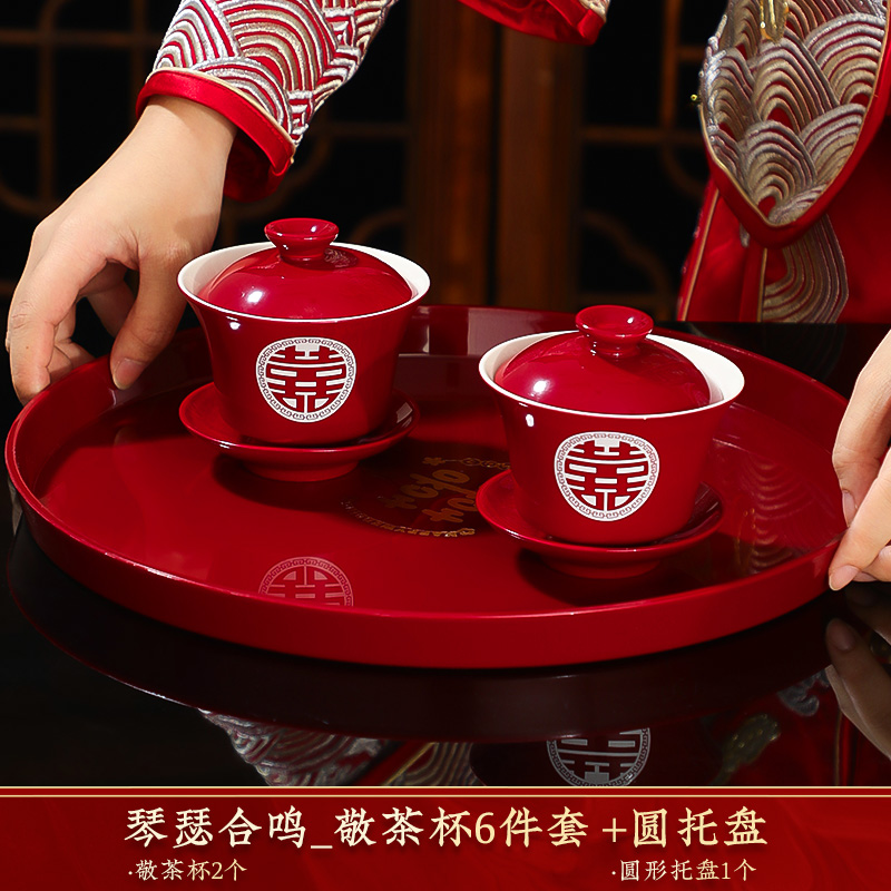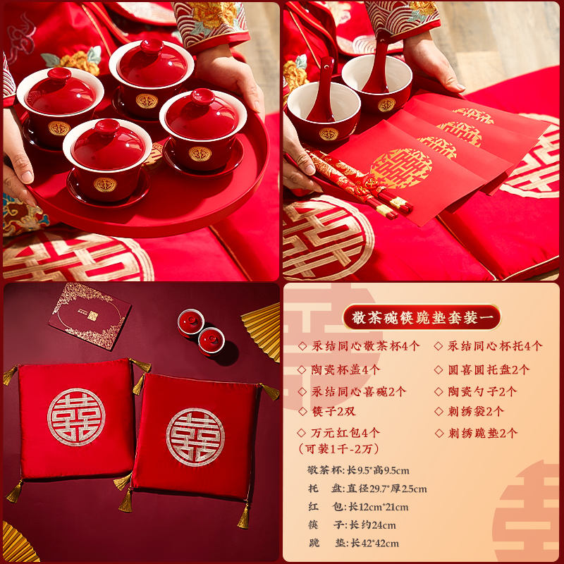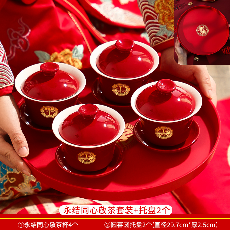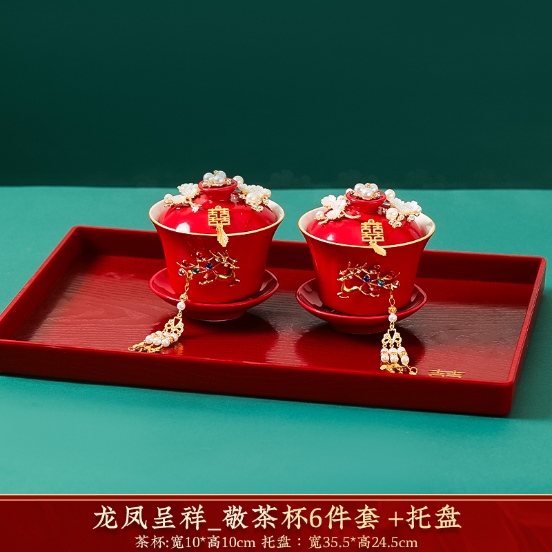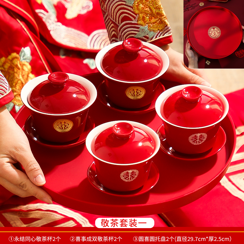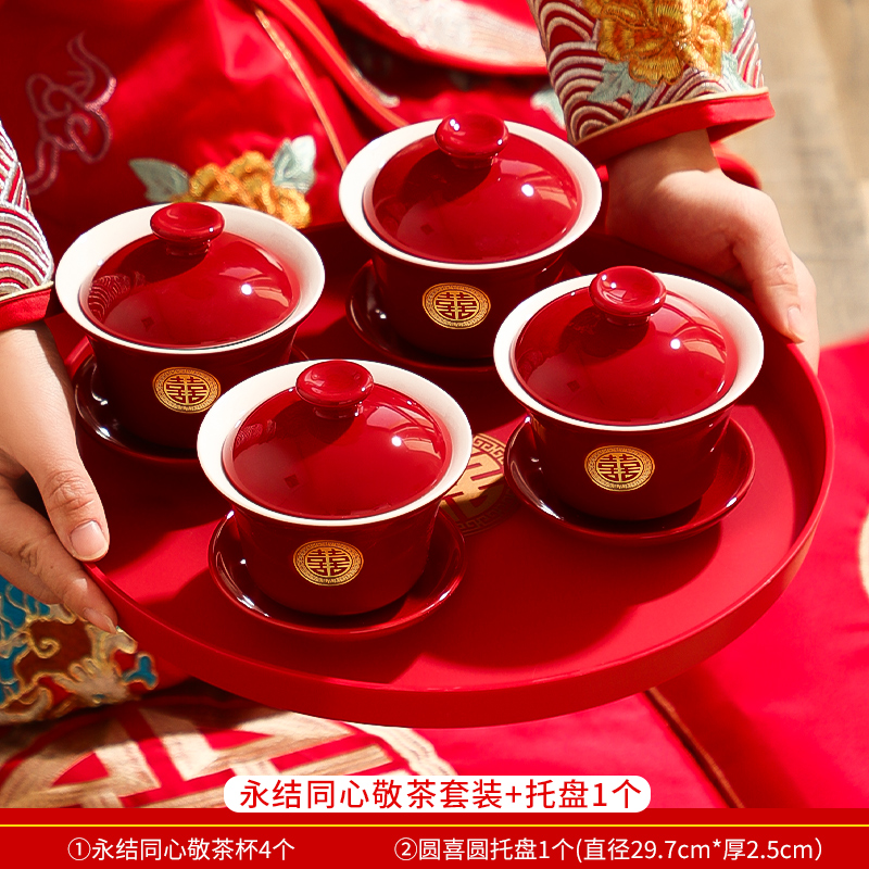 결혼식 용품은 차 컵으로 바뀌 었습니다. 행복한 그릇과 젓가락 컵 웨딩 레드 티 세트 토스트스토어 가기
