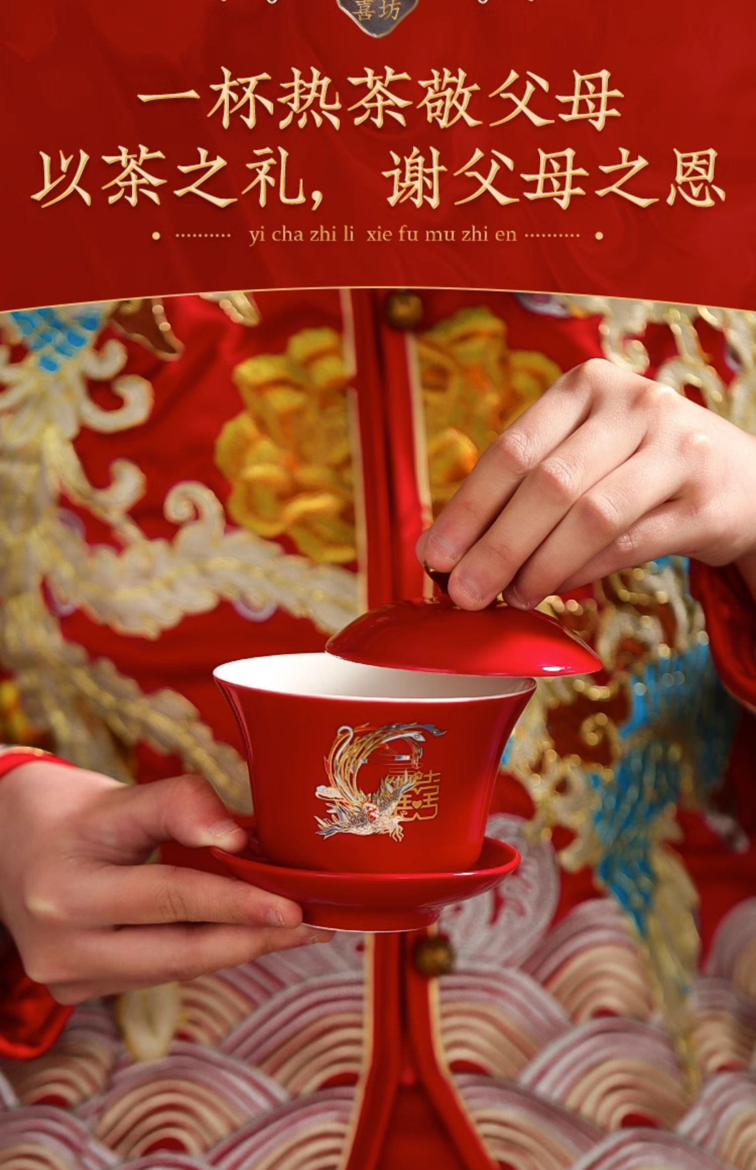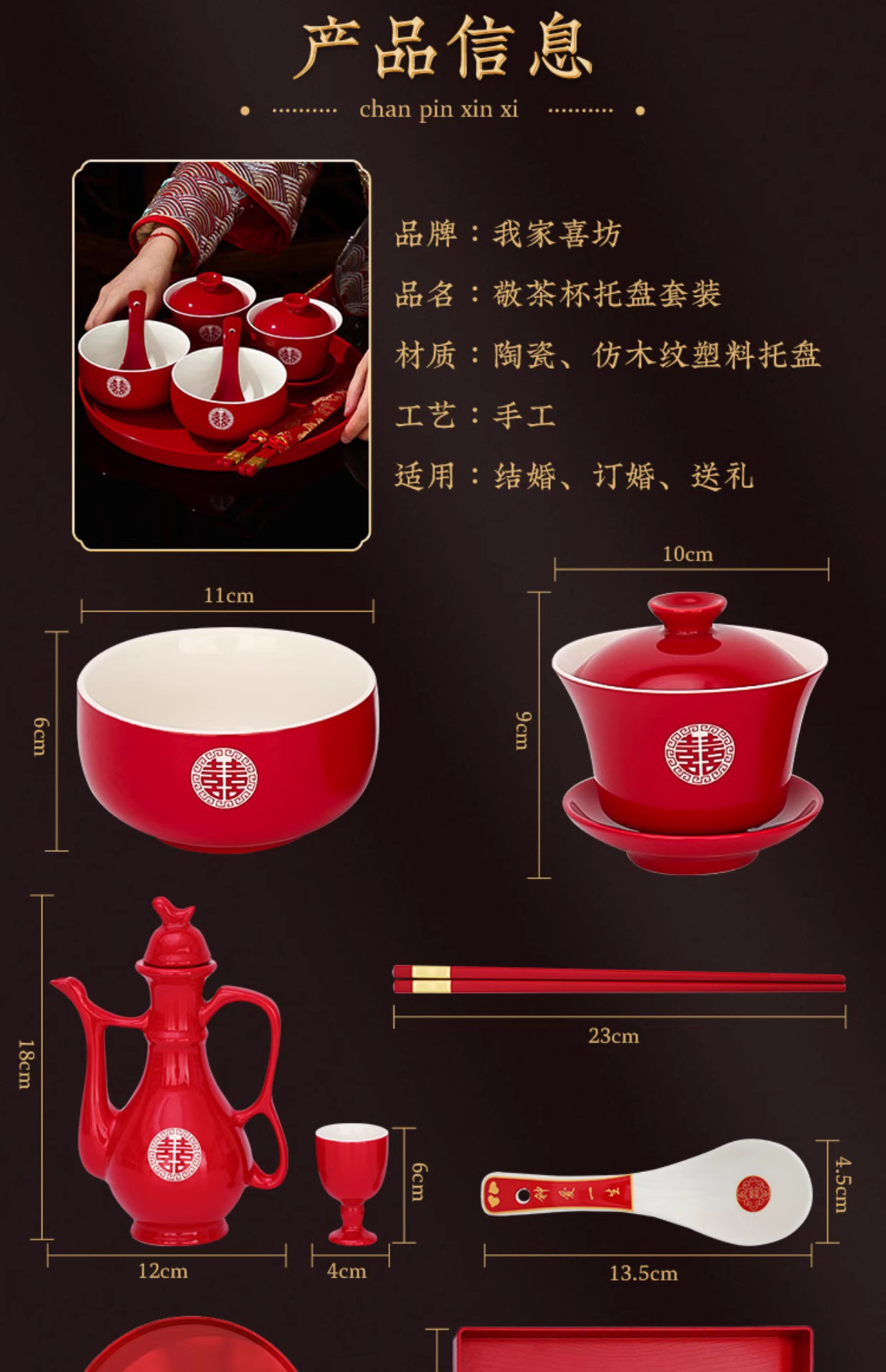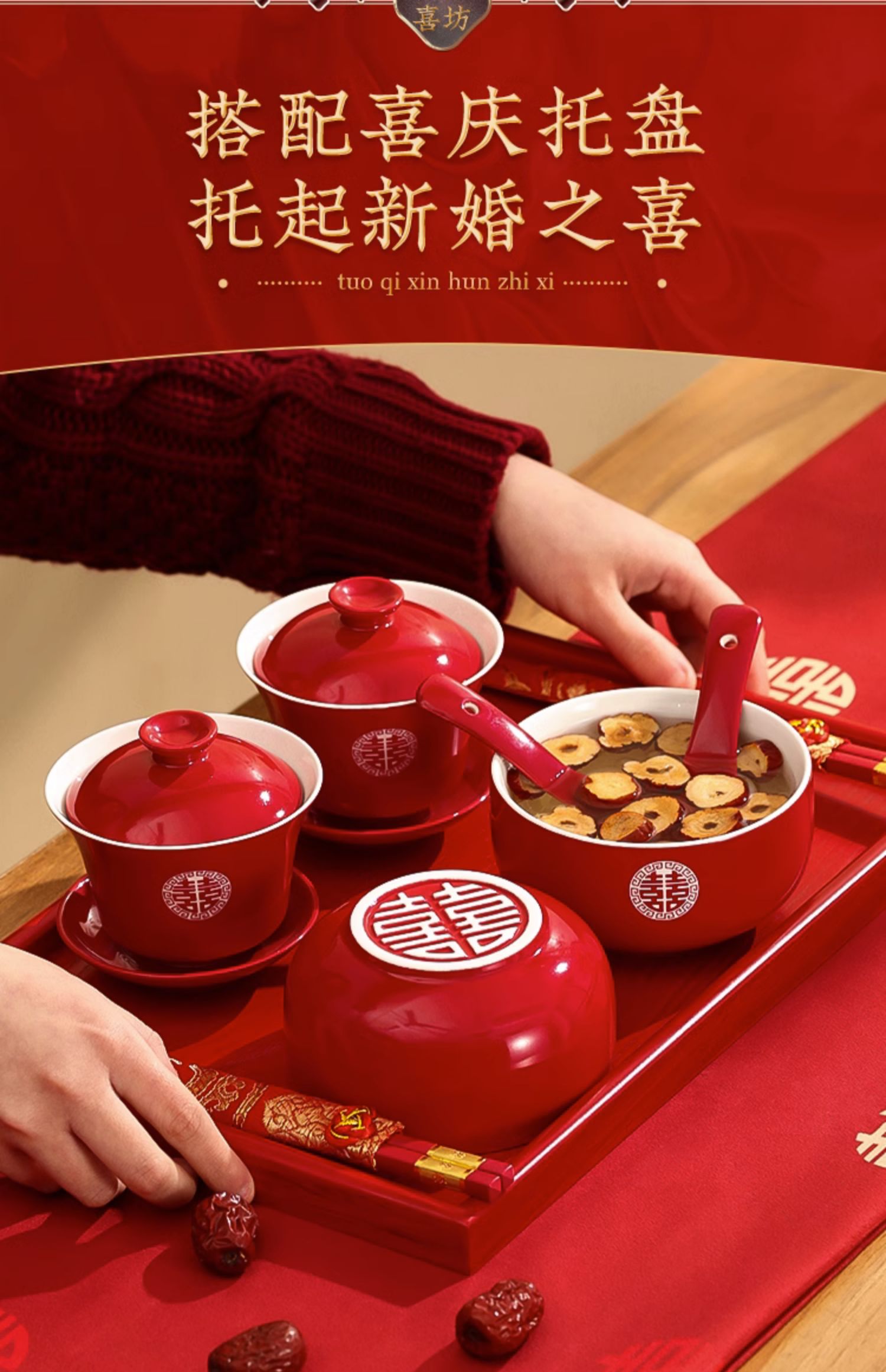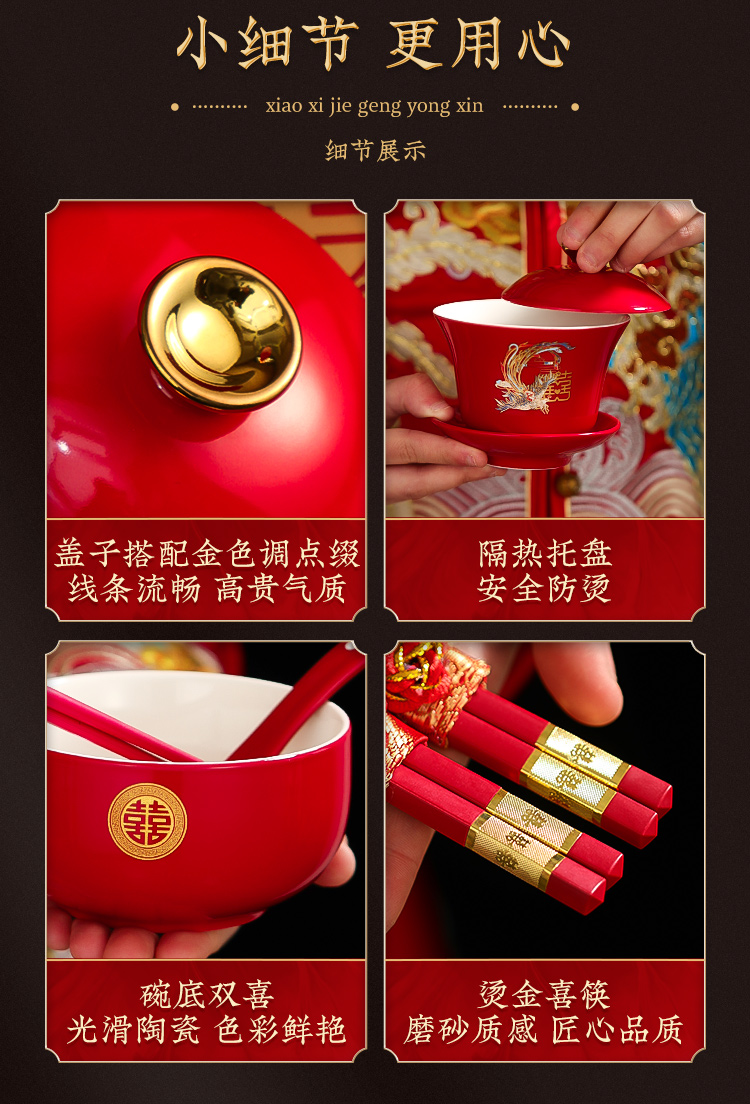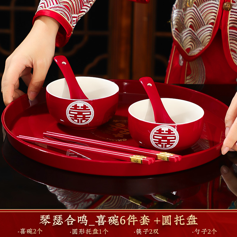 결혼식 용품은 차 컵으로 바뀌 었습니다. 행복한 그릇과 젓가락 컵 웨딩 레드 티 세트 토스트스토어 가기