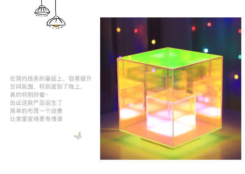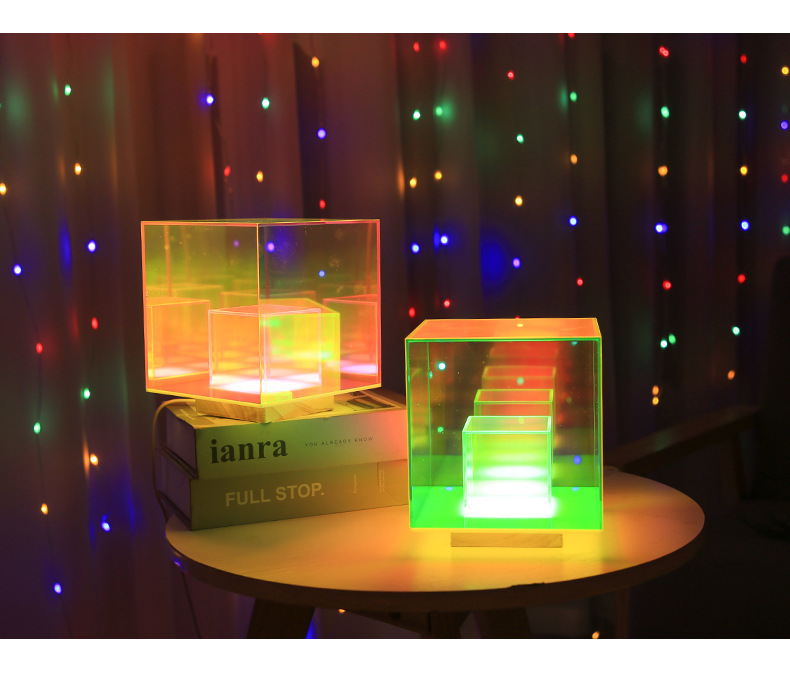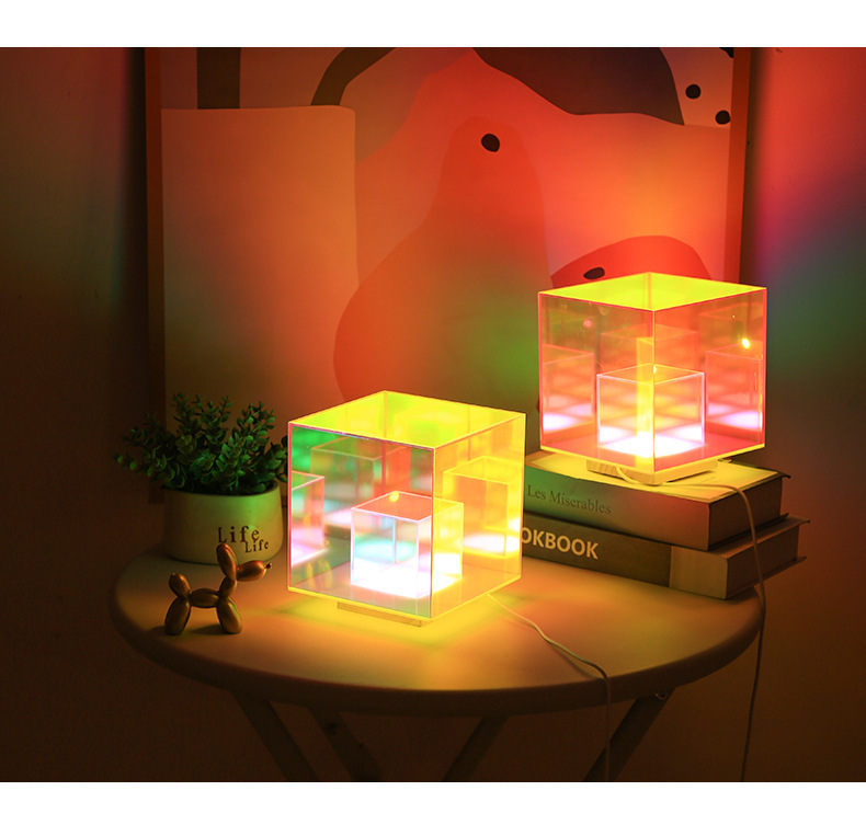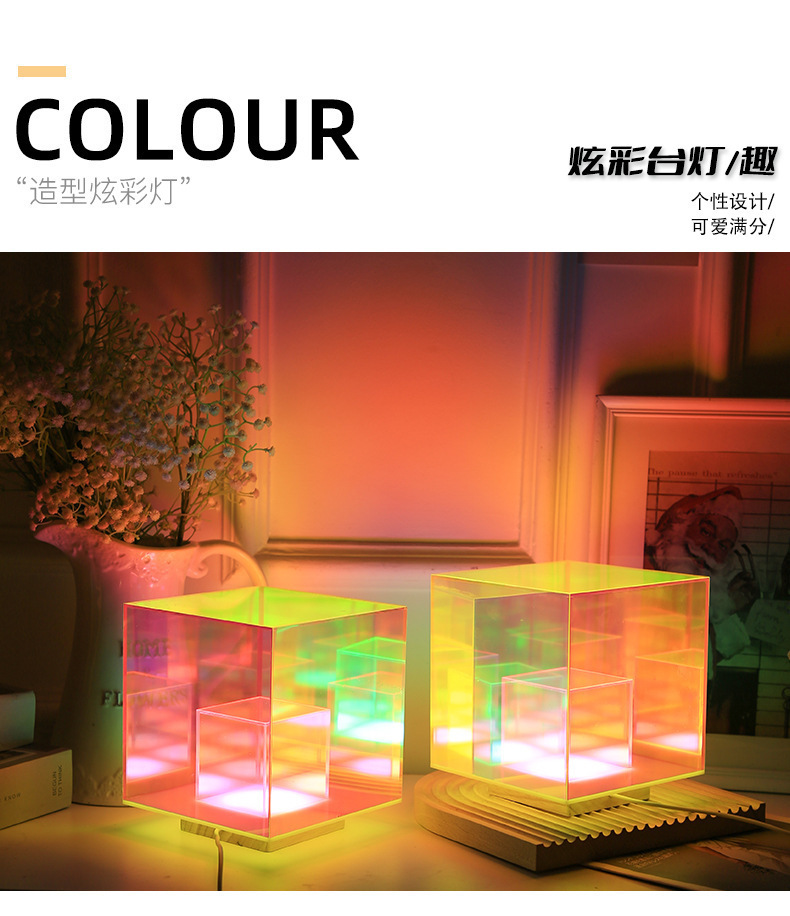 다채로운 테이블 램프 침실 감성 장식 야간 조명 인터넷 레드 크리에이티브 E-스포츠 데스크탑 분위기 루빅스 큐브 야광 선물