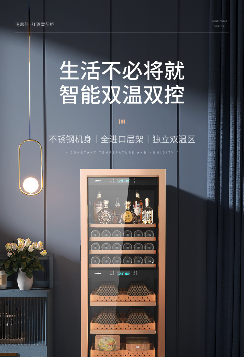주스타운/Jiasi 수프 시가 내각 지문 암호 이중 온도 일정한 습도 적포도주 시가 통합 캐비닛 냉장고