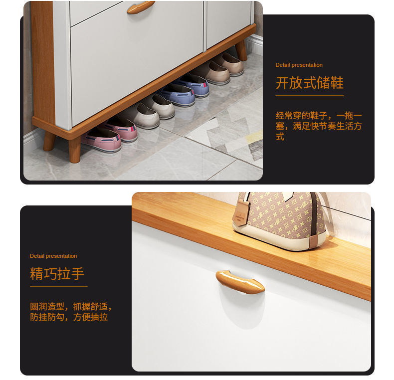 인터넷 레드 스타일 울트라 얇은 신발 캐비닛 입구 문 벽 보관 티퍼 입구 캐비닛 슈퍼 대용량 솔리드 우드 다리 신발 랙