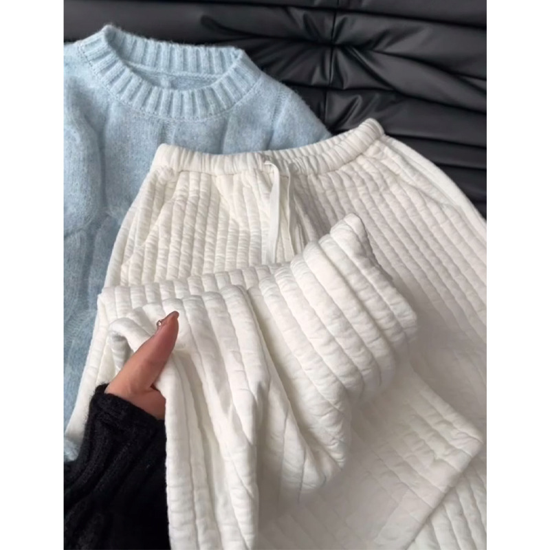 프라이드 치킨 편안한 ~ 게으른 젠틀 크리미 화이트 두꺼운 코튼 팬츠 여성의 겨울 캐주얼 느슨한 넓은 다리 바지