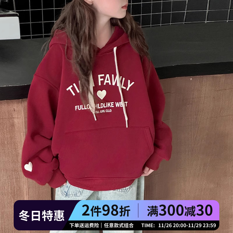 소녀 후드 2024 어린이 가을 옷 가을과 겨울 옷 새로운 스타일 대규모 어린이와 소녀 서양식 후드 두꺼운 탑스토어 가기