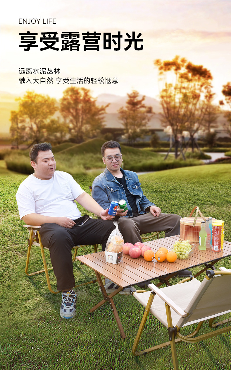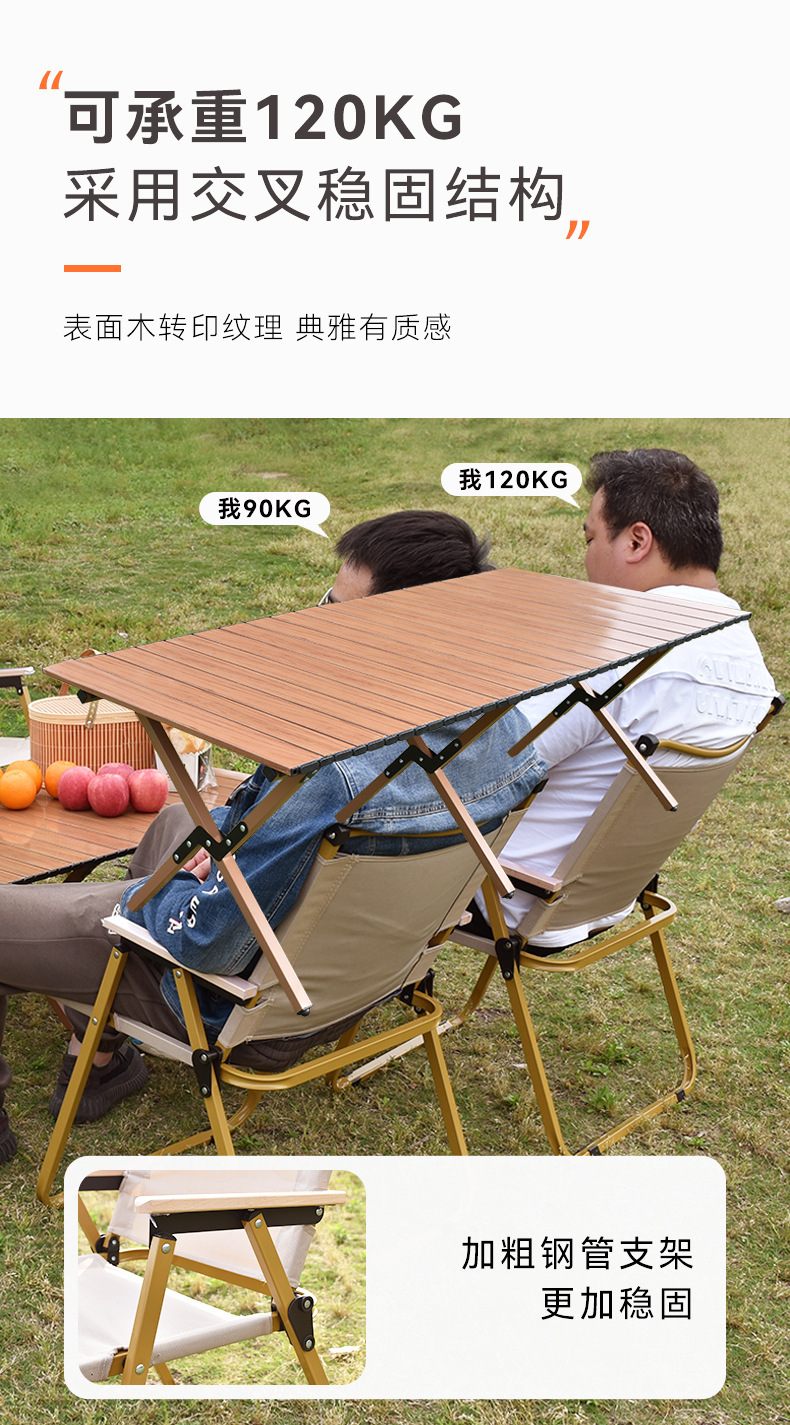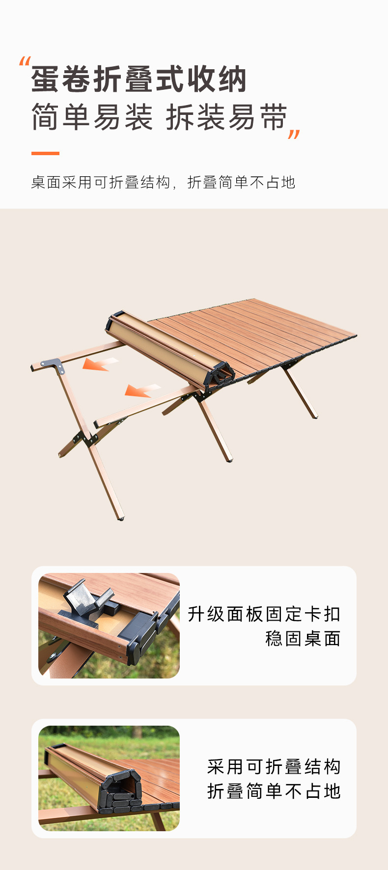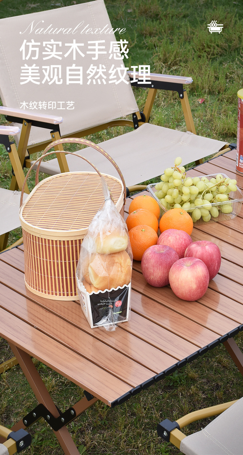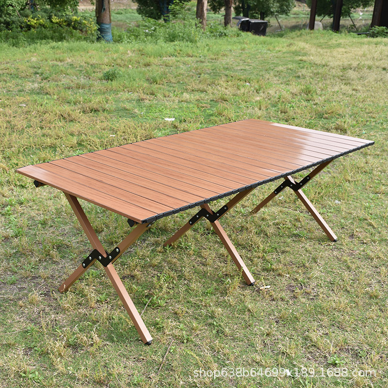 야외 새로운 탄소 강철 나뭇결 달걀 롤 테이블 현대 간단한 캠핑 피크닉 테이블 편리한 야외 접이식 테이블 도매스토어 가기