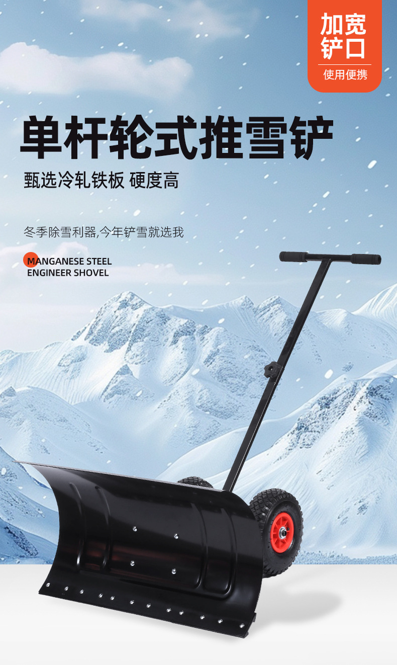단일 극 올스틸 휠 스노우 삽 손으로 밀린 눈 삽 제설 제설 눈 청소 유물 도로 표면 눈 청소