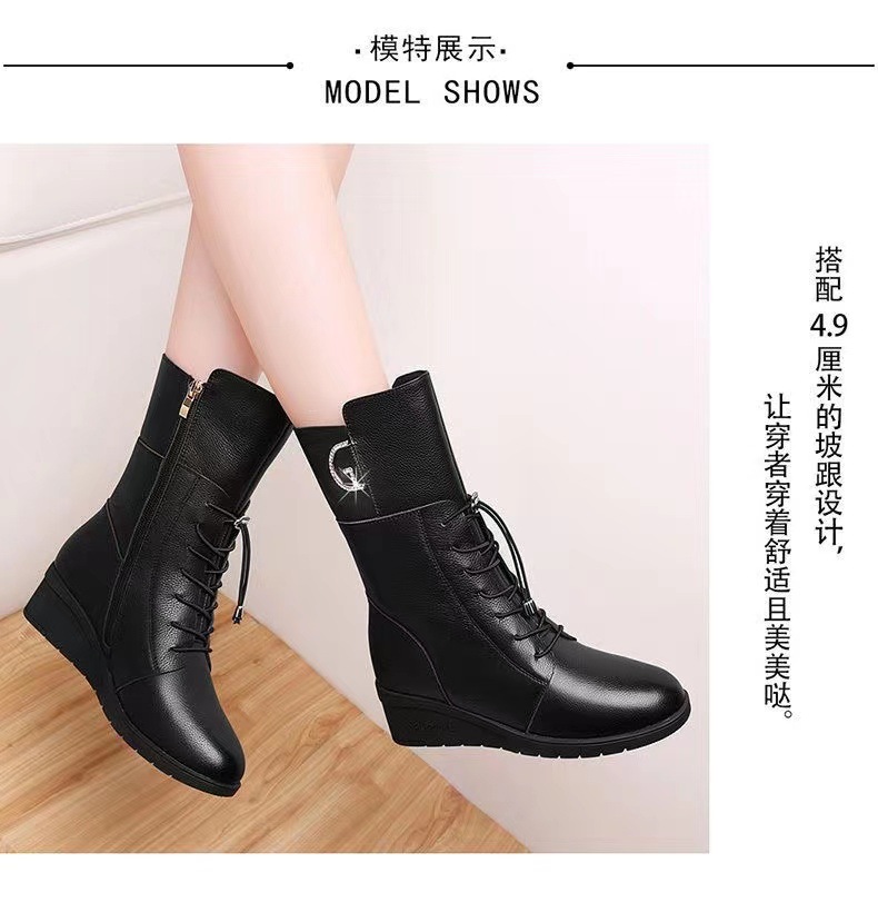 하이 퀄리티 웨지 힐 미드 부트 바닥 마틴 부츠 패션 엄마 신발 여성 2024 가을과 겨울 새로운 미끄럼 방지 기모 가죽 부츠스토어 가기