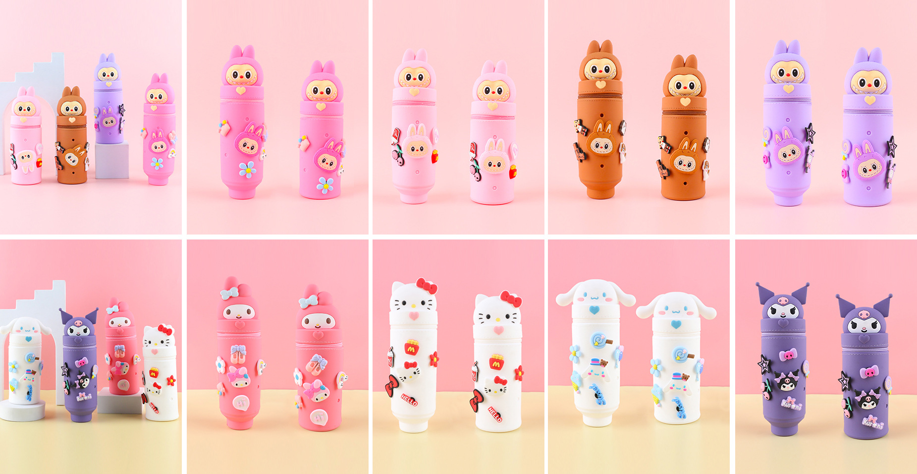 DIY 실리콘 만화 연필 가방, 고급스러운 수납 문구 상자, 대용량 필통, 학생 구멍 문구 가방