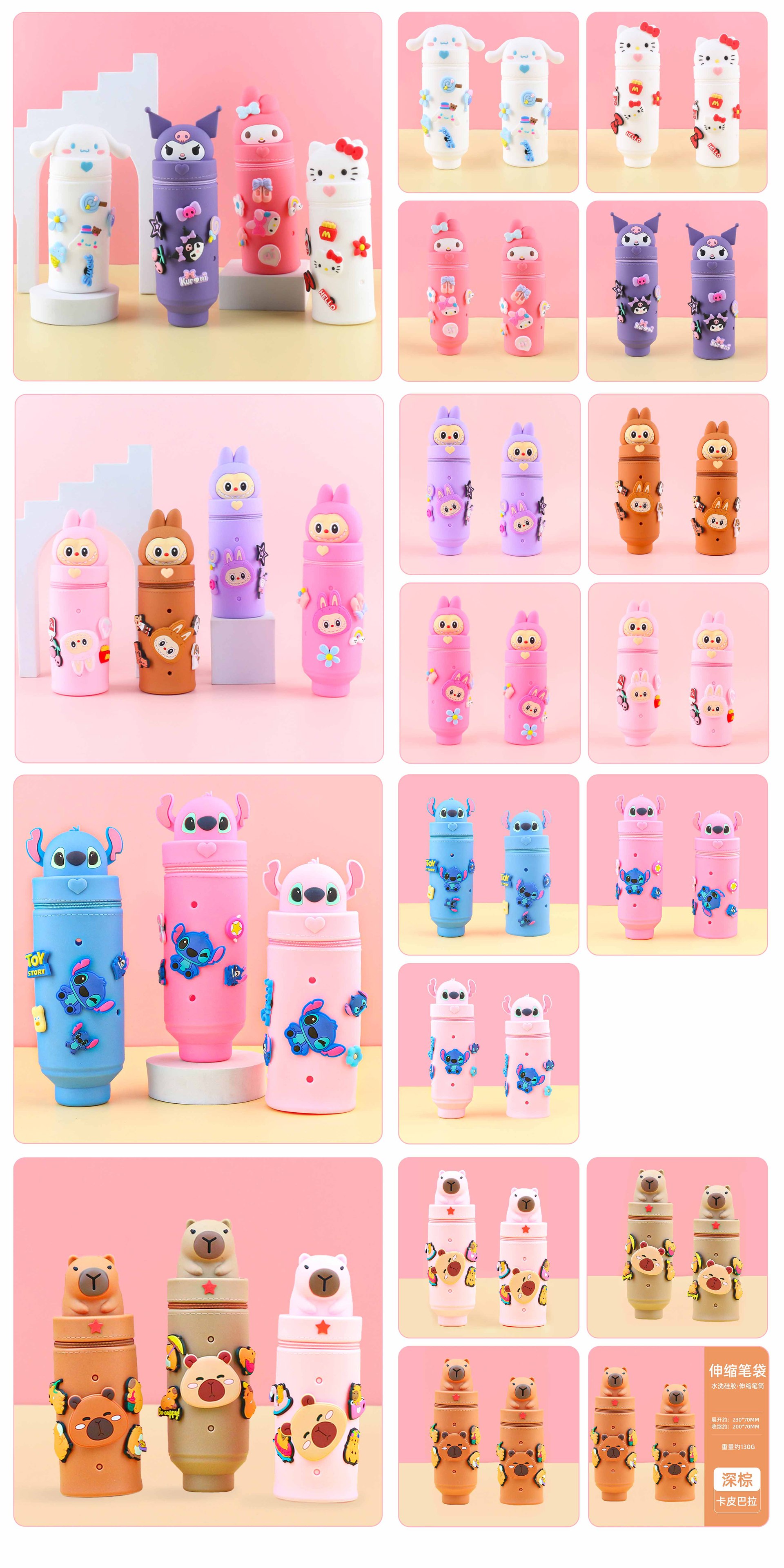 DIY 실리콘 만화 연필 가방, 고급스러운 수납 문구 상자, 대용량 필통, 학생 구멍 문구 가방스토어 가기