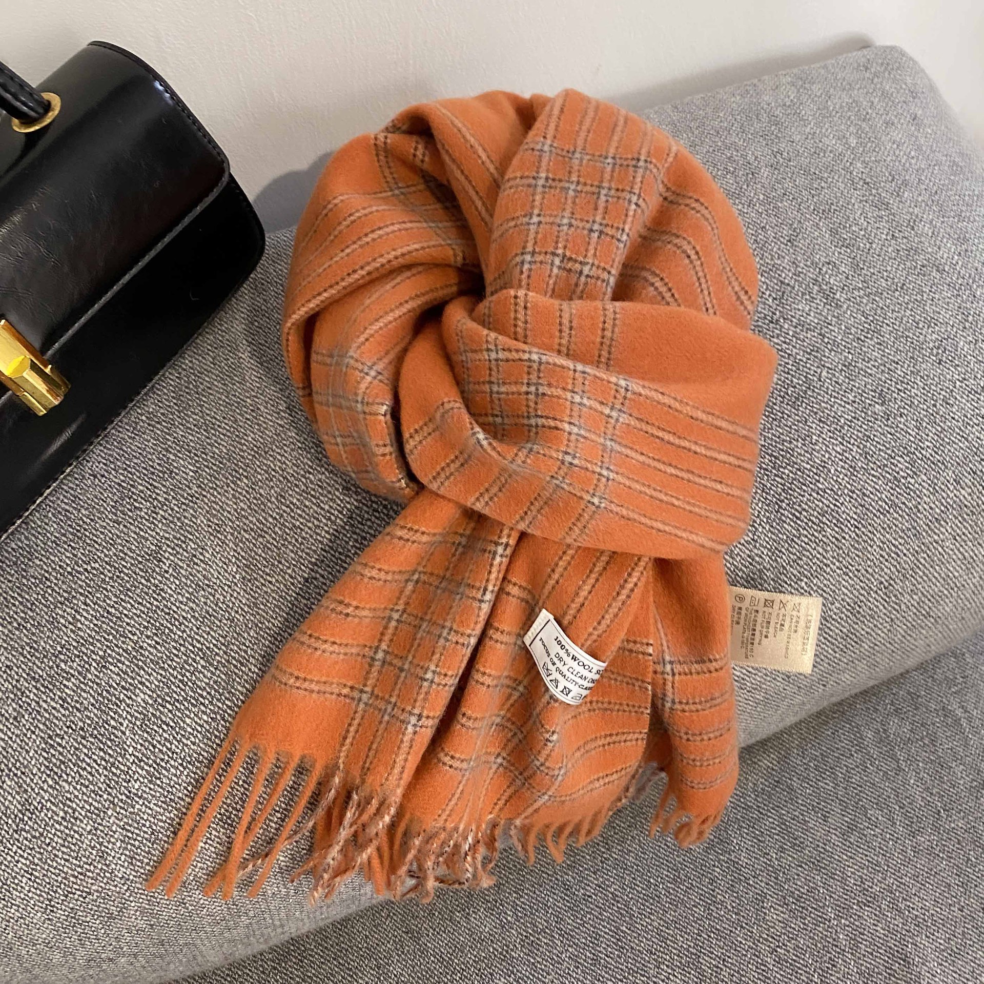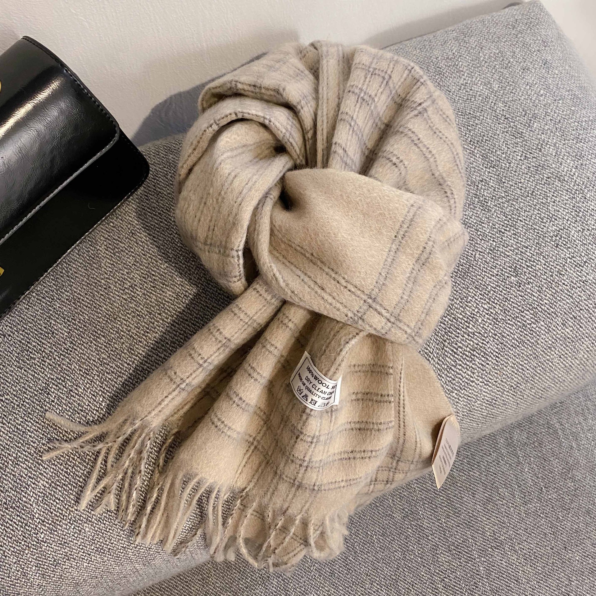 한국 스타일 100% WOOL 양 양모 스카프 여성의 겨울 하이 엔드 2024 새로운 영국 스타일 줄무늬 스카프 선물 상자스토어 가기