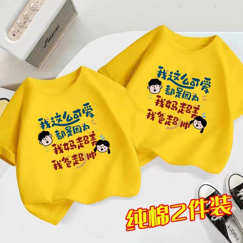 순수 코튼 어린이 2025 새로운 여름 스타일 소년과 소녀 베이비 탑 재미있는 텍스트 외국 스타일 느슨한 반팔 티셔츠스토어 가기