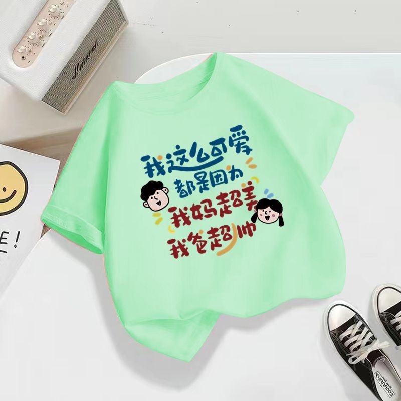 순수 코튼 어린이 2025 새로운 여름 스타일 소년과 소녀 베이비 탑 재미있는 텍스트 외국 스타일 느슨한 반팔 티셔츠