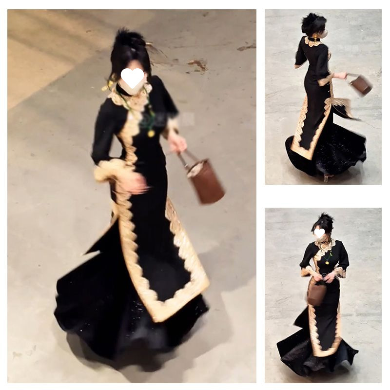 • 기질 검은 치파오 + 스커트 [미백, 슬리밍]