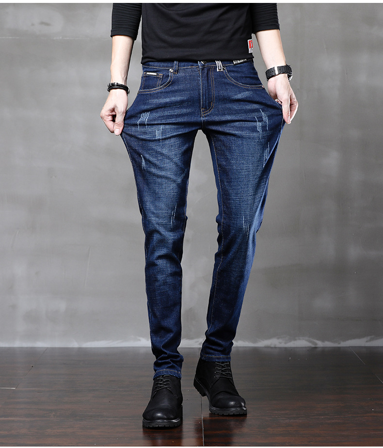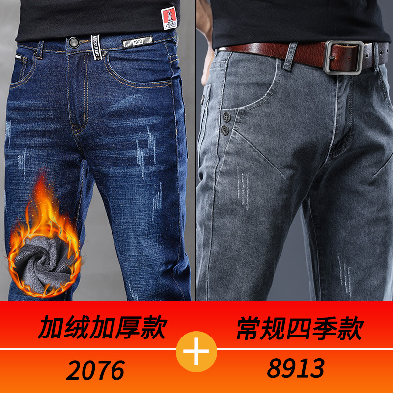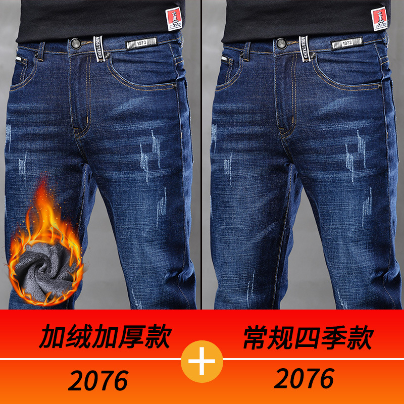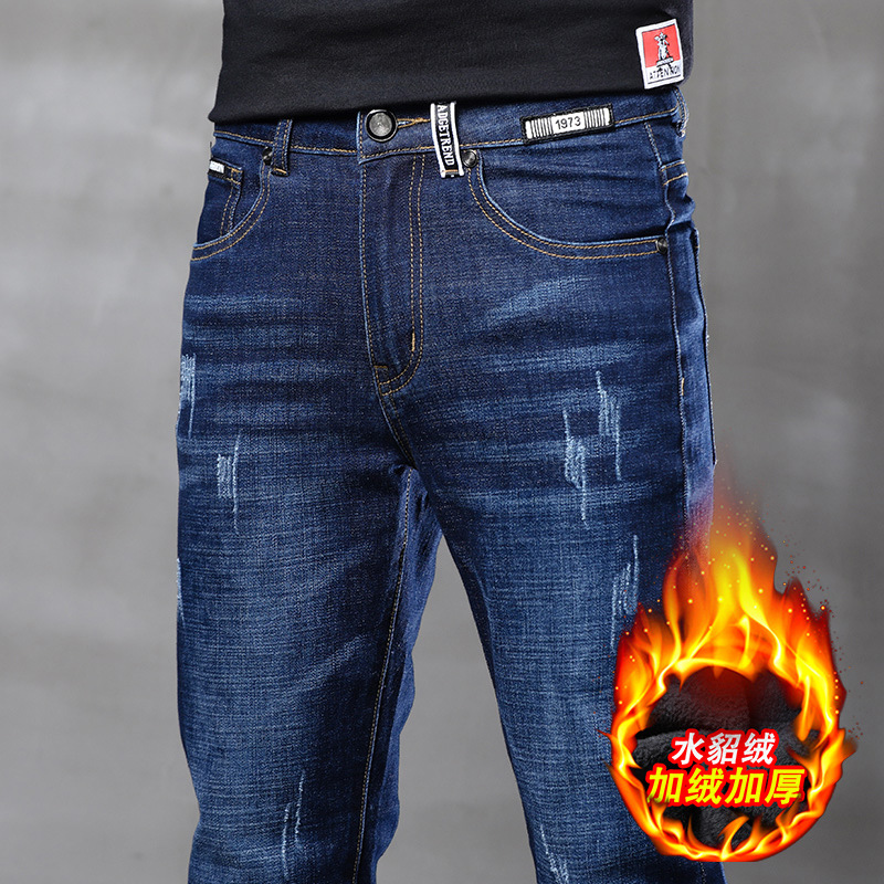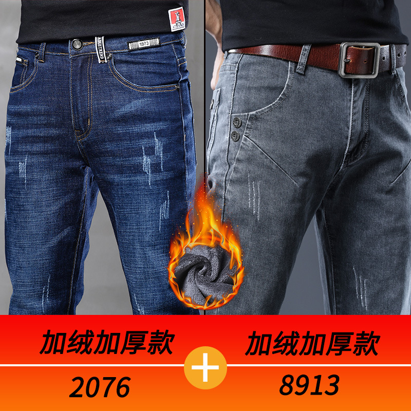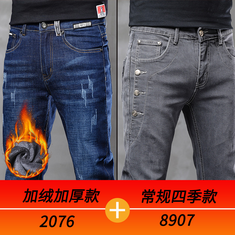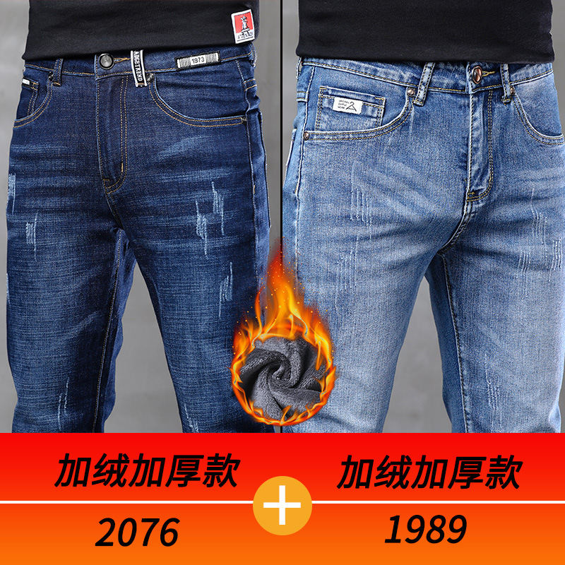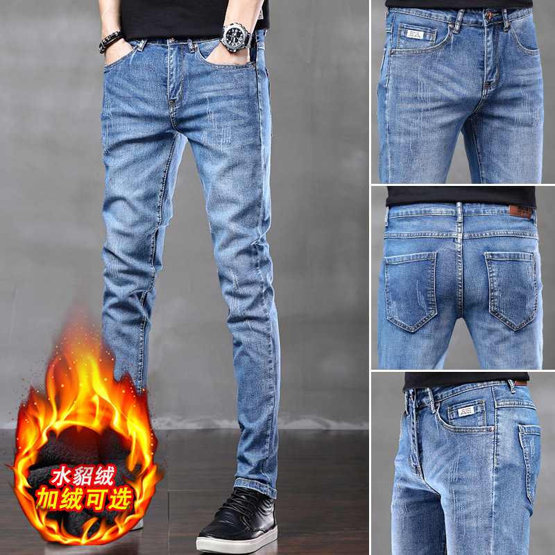 청바지 남자의 슬림 핏 작은 발 2024 가을 겨울 기모 새로운 스트레치 캐주얼 겨울 긴 바지 남자스토어 가기