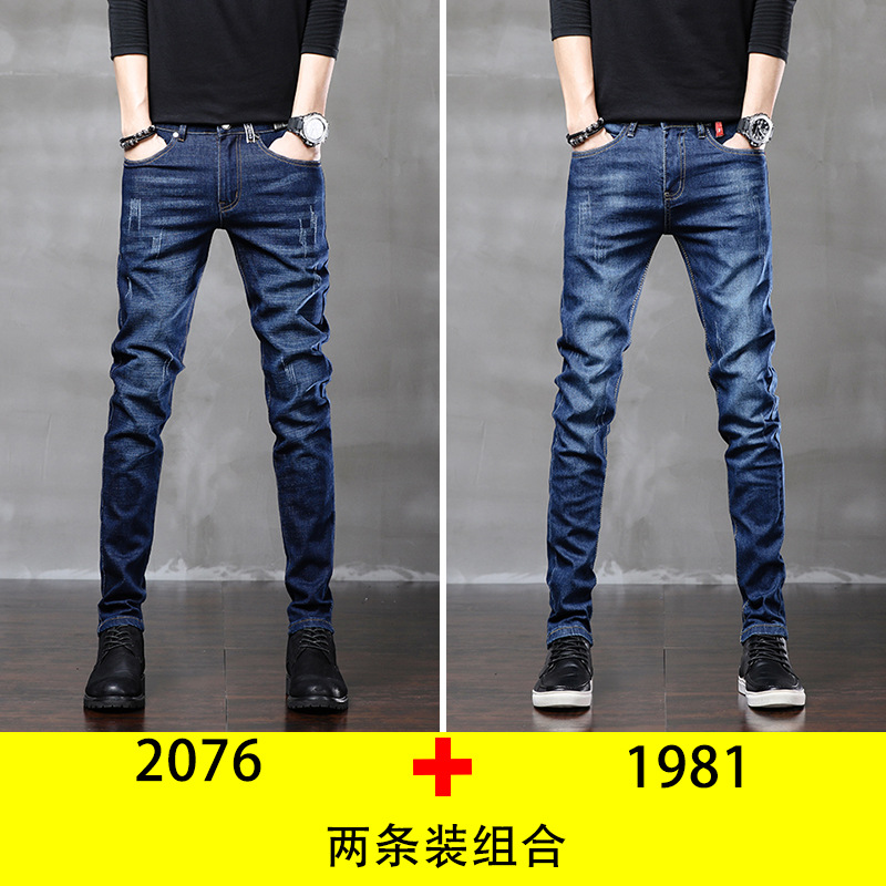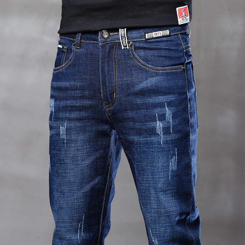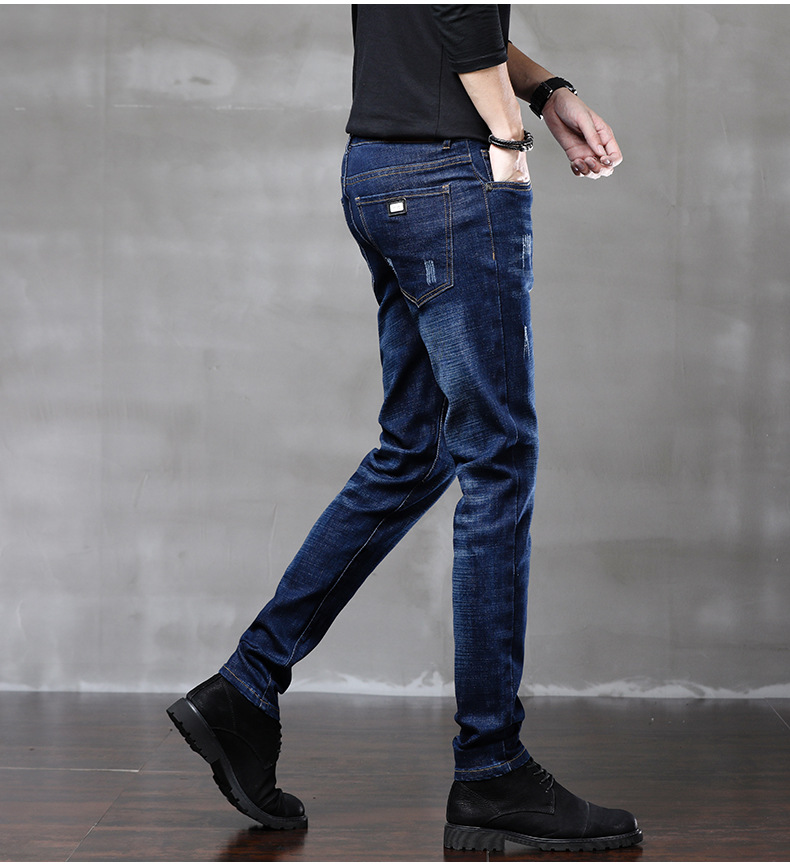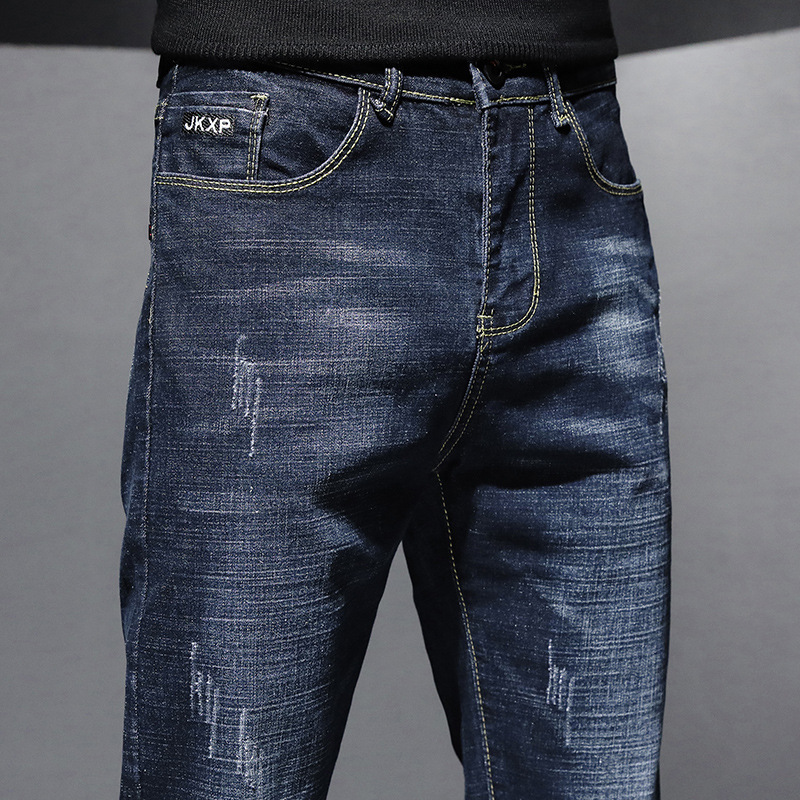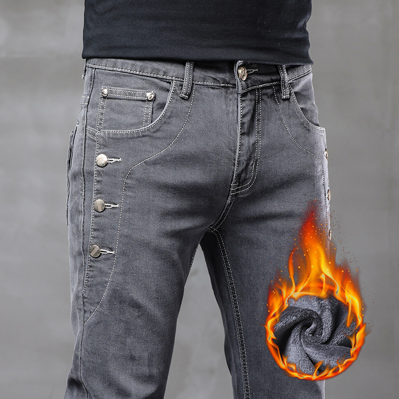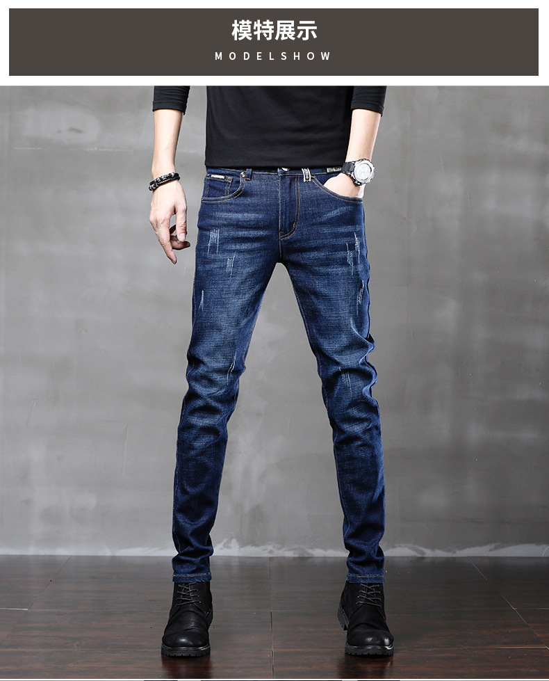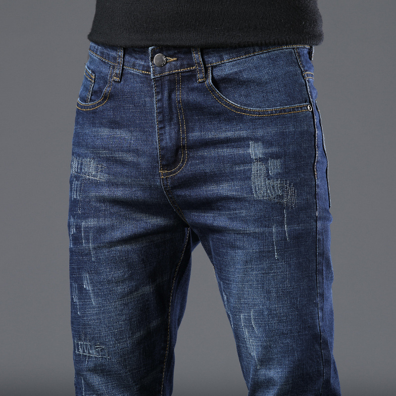 청바지 남자의 슬림 핏 작은 발 2024 가을 겨울 기모 새로운 스트레치 캐주얼 겨울 긴 바지 남자스토어 가기