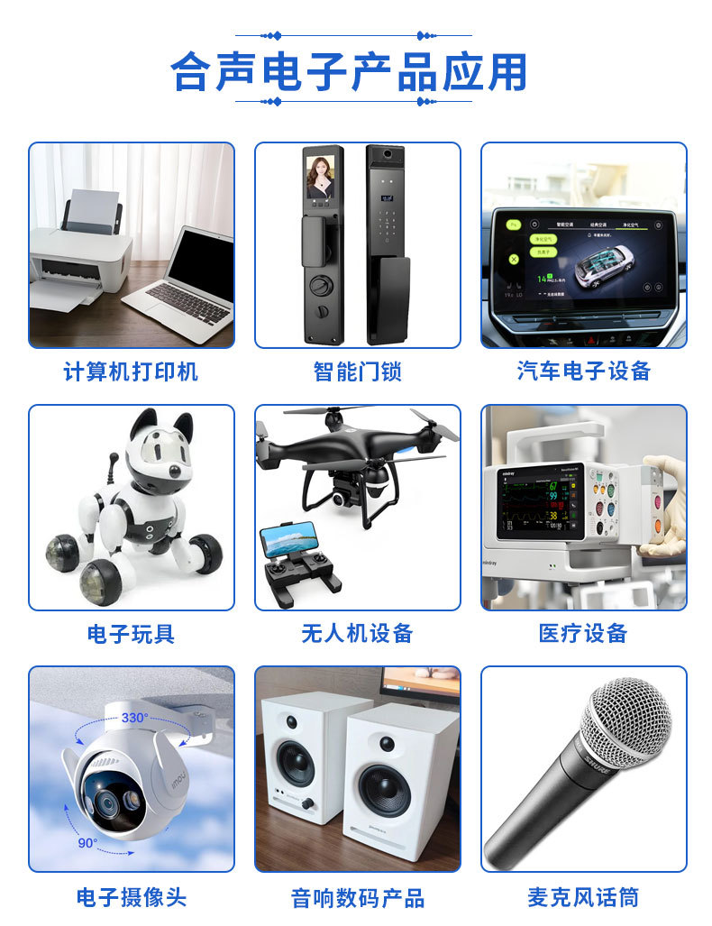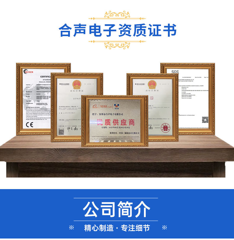 深圳市合声电子有限公司是专业生产及销售电子蜂鸣器(电磁式、压电式、贴片式)蜂鸣片、咪头、喇叭、电子元件制造等产品的公司,拥有完整、科学的质量管理体系。深圳市合声电子有限公司的诚信、实力和产品质量获得业界的认可。欢迎各界朋友莅临参观、指导和业务洽谈。