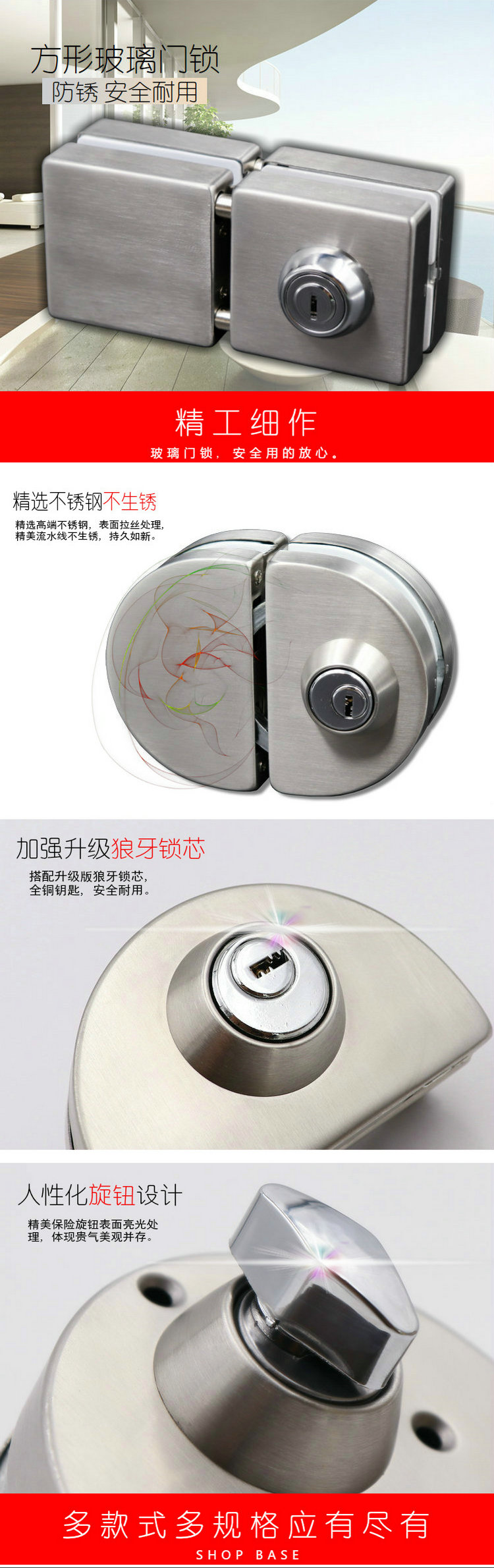 M & 강화 유리 도어락 숍 푸시 풀 도어락 오픈 홀프리 U 자형 잠금 싱글 도어 더블 도어 프레임리스 유리 플로어 잠금 삽입스토어 가기