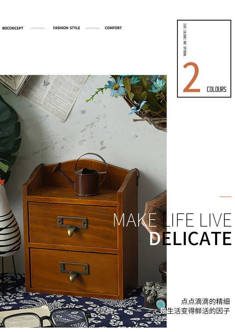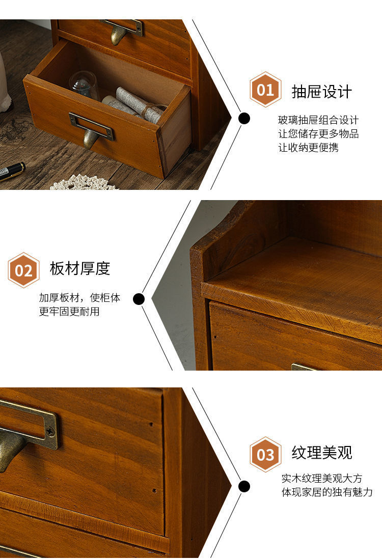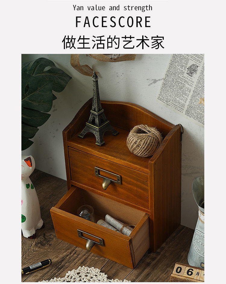 데스크탑 서랍 유형 저장 상자 파티션 다층 사무실 테이블 학생을위한 작은 상자 책상 유물 레트로 솔리드 우드스토어 가기