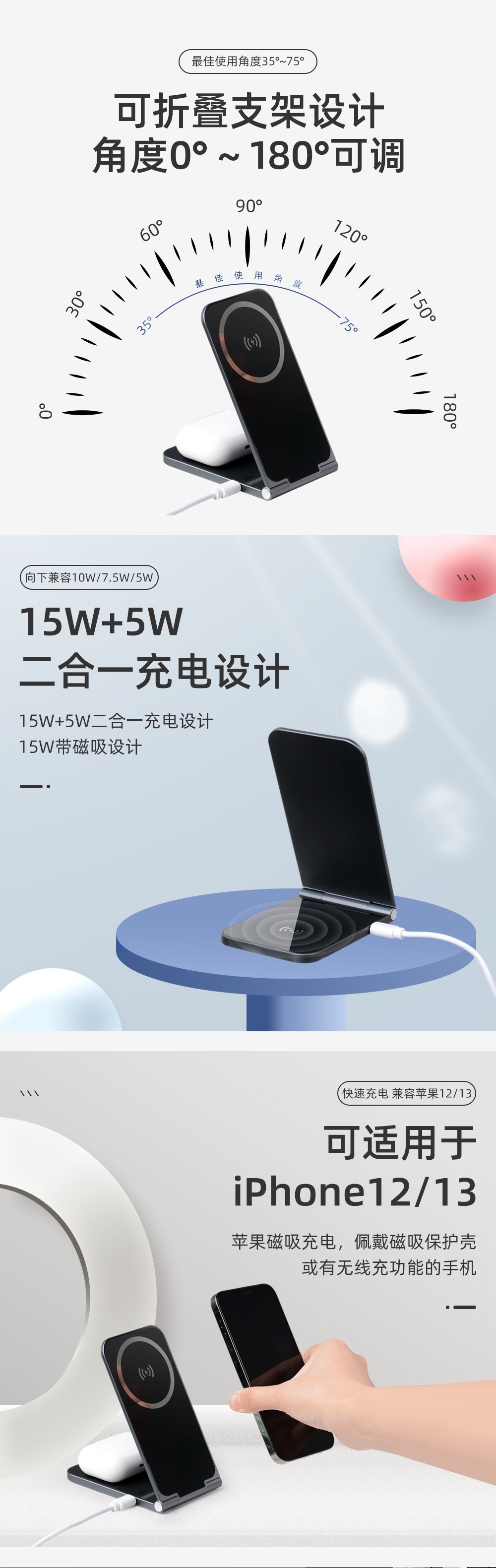 8)15W+5W二合一充电设计,15W带磁吸设计,向下兼容10W/7.5W/5W