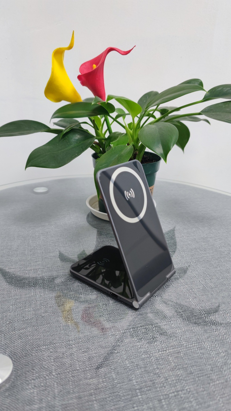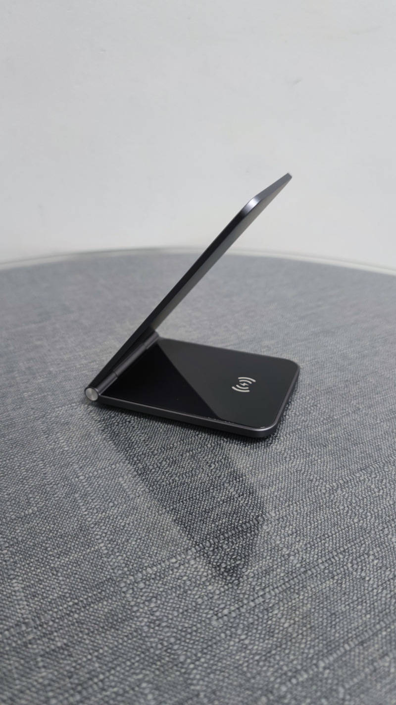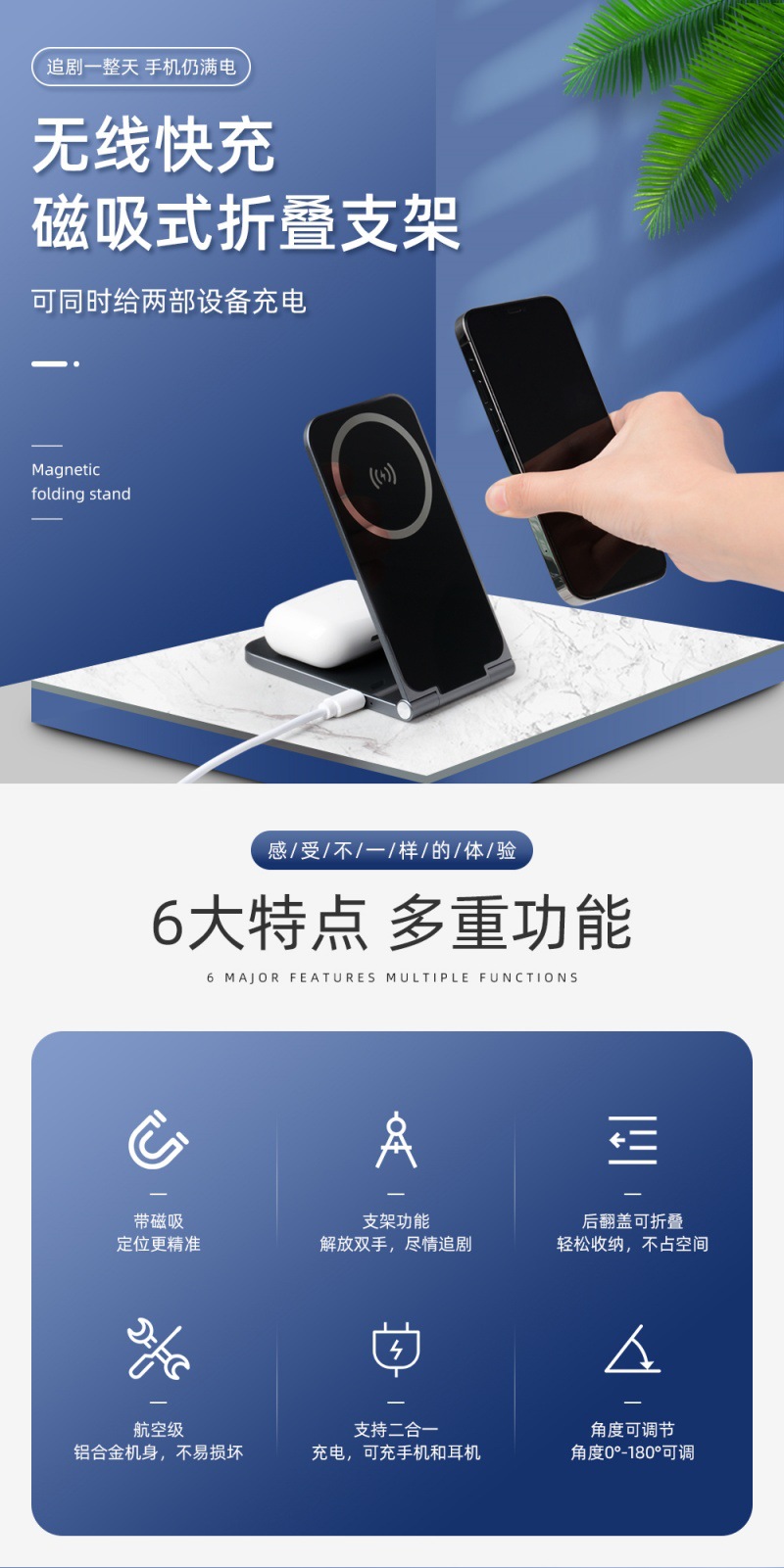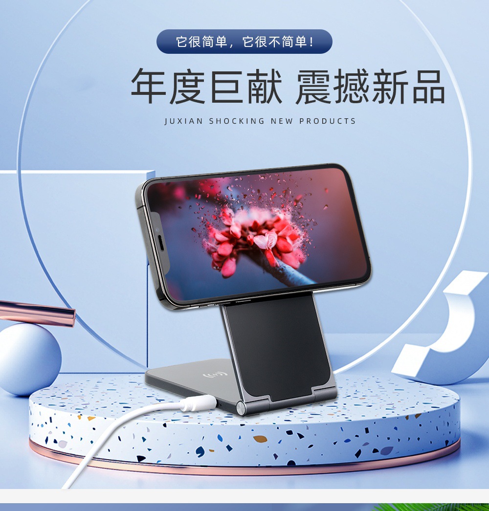 5)是无线充也是时尚手机支架,支持手机180度横放充电