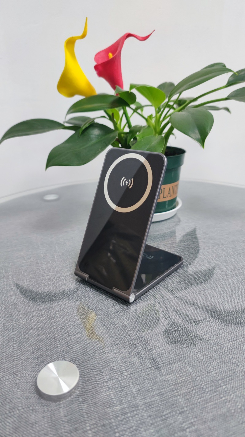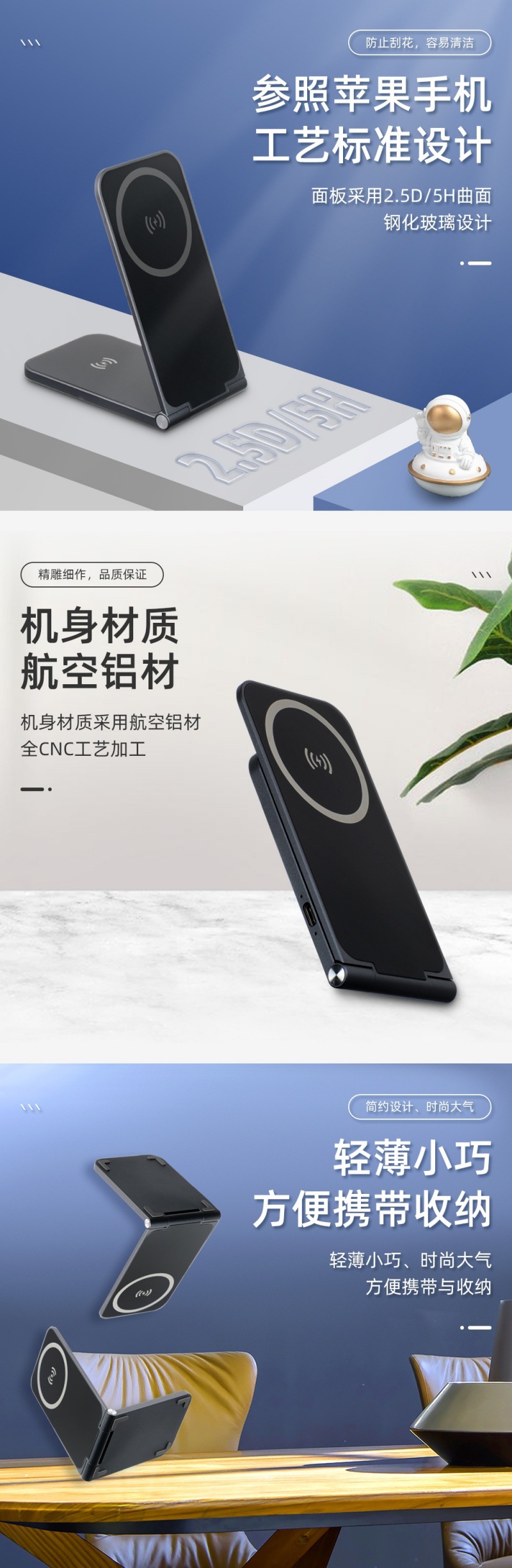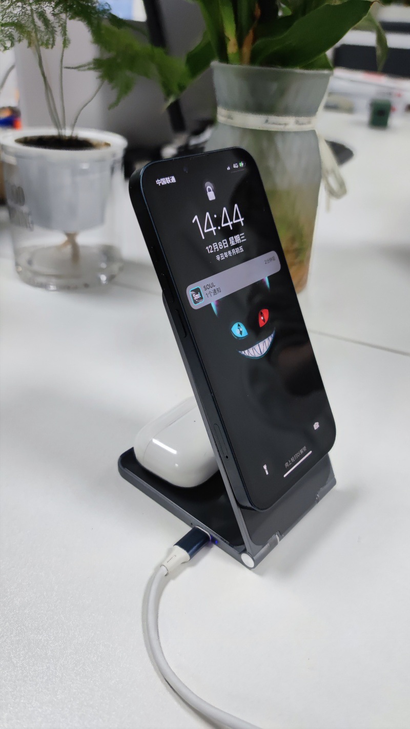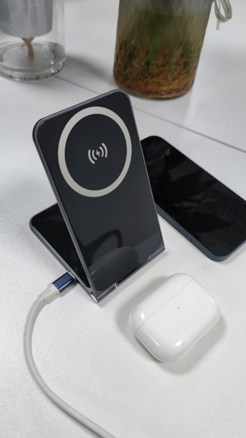 5)是无线充也是时尚手机支架,支持手机180度横放充电