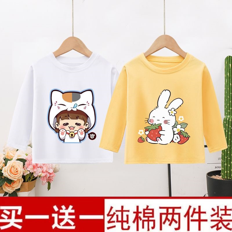 어린이 100 면 긴팔 티셔츠 여아 소년 아기 옷 여름 느슨한 어린이 탑베이스 셔츠스토어 가기