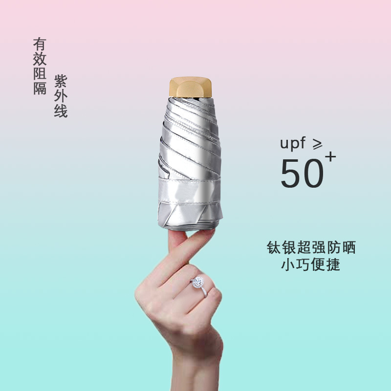 새로운 티타늄 실버 고무 플랫 5 배 우산 맑고 비오는 우산 포켓 우산 미니 선 스크린 우산 인쇄 가능