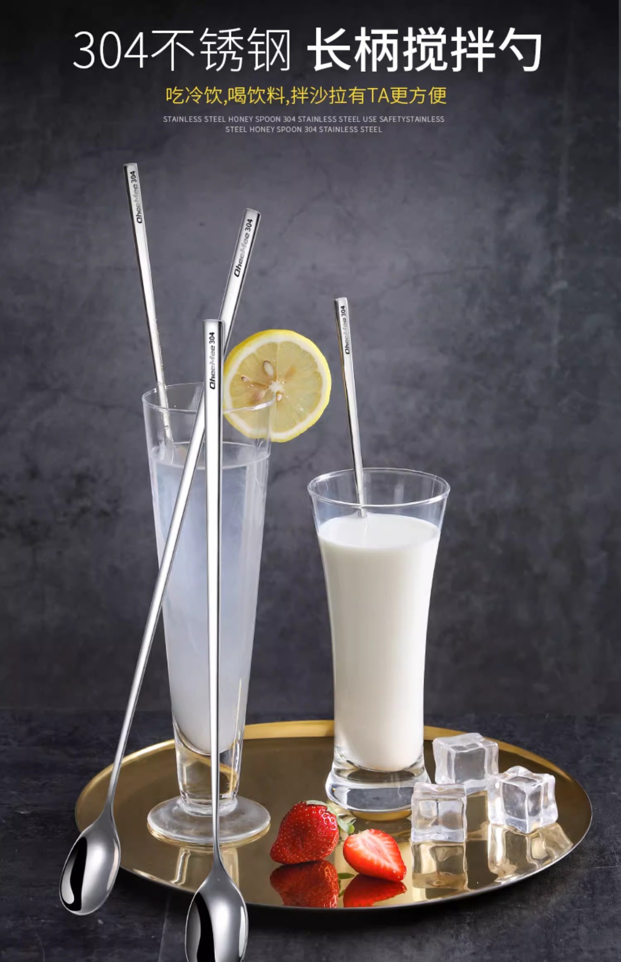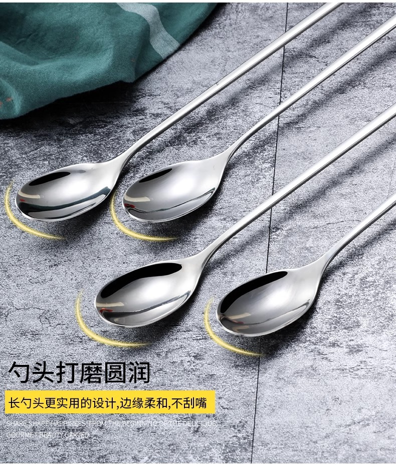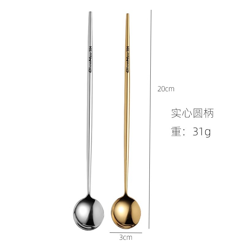 304 스테인레스 스틸 긴 손잡이 혼합 숟가락 작은 숟가락 절묘한 커피 스푼 확장 된 숟가락 디저트 우유 차 혼합 스틱