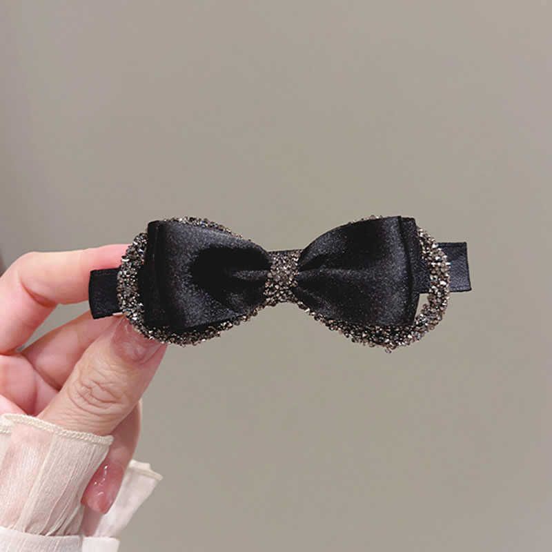 패션 블랙 보우 타이 플래시 다이아몬드 한 캐릭터 클립 세련된 소녀의 포니 테일 스프링 클립 하이 컬러 값 헤어 헤드웨어