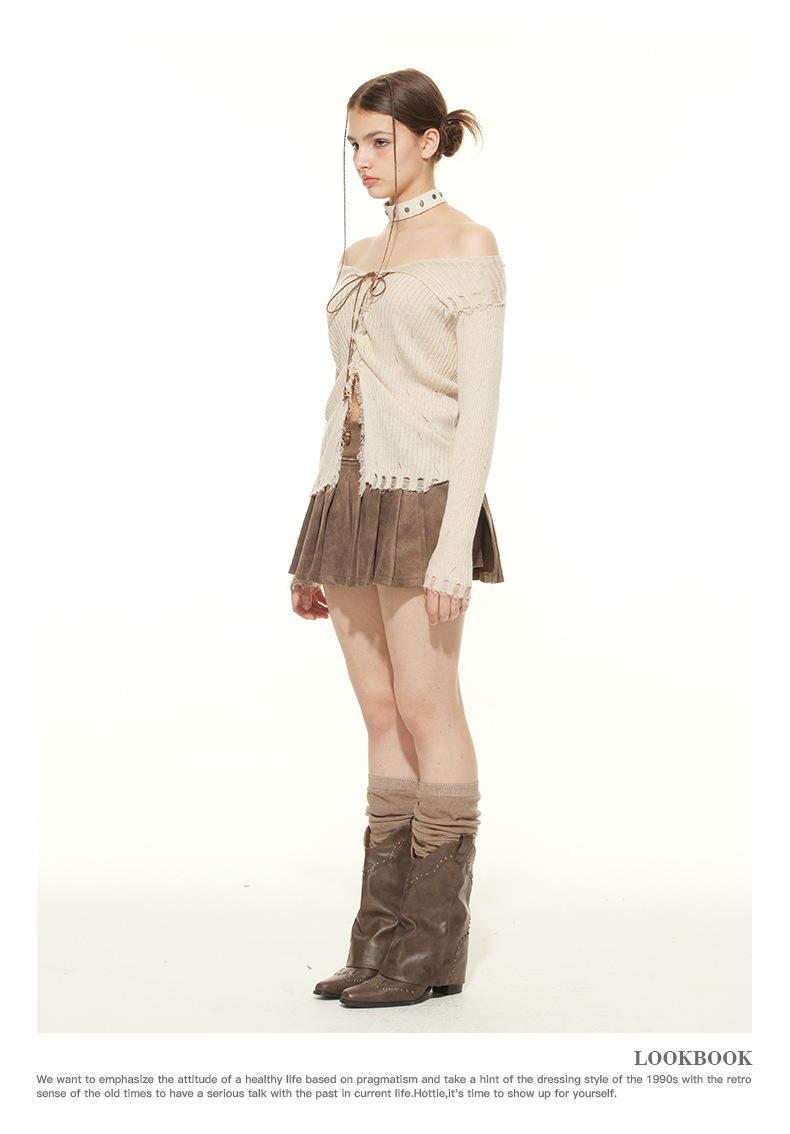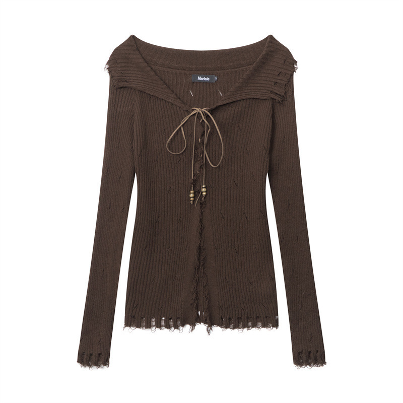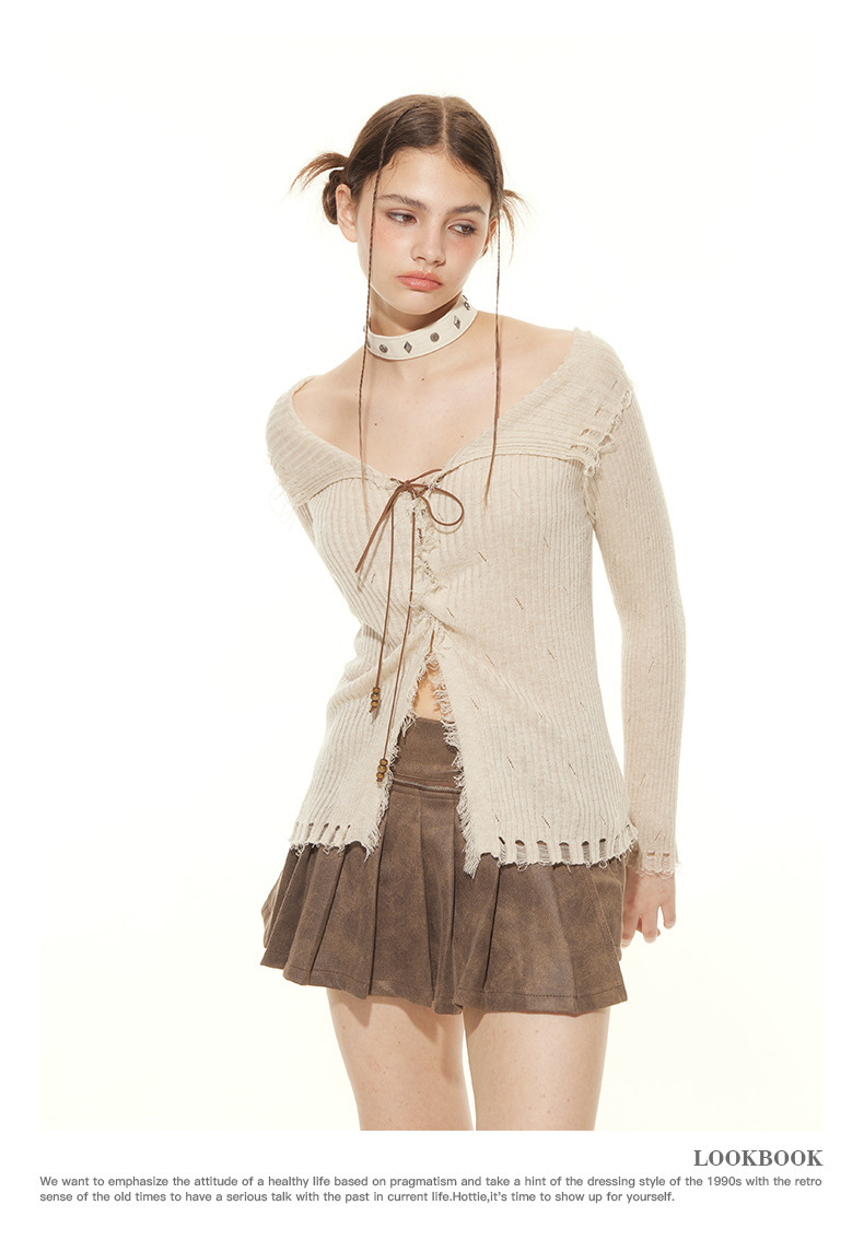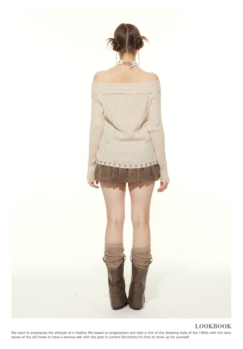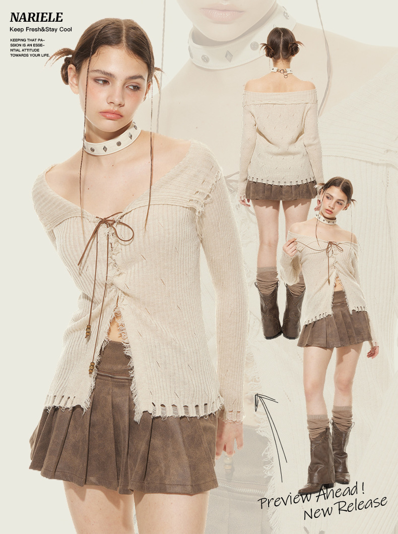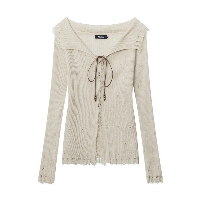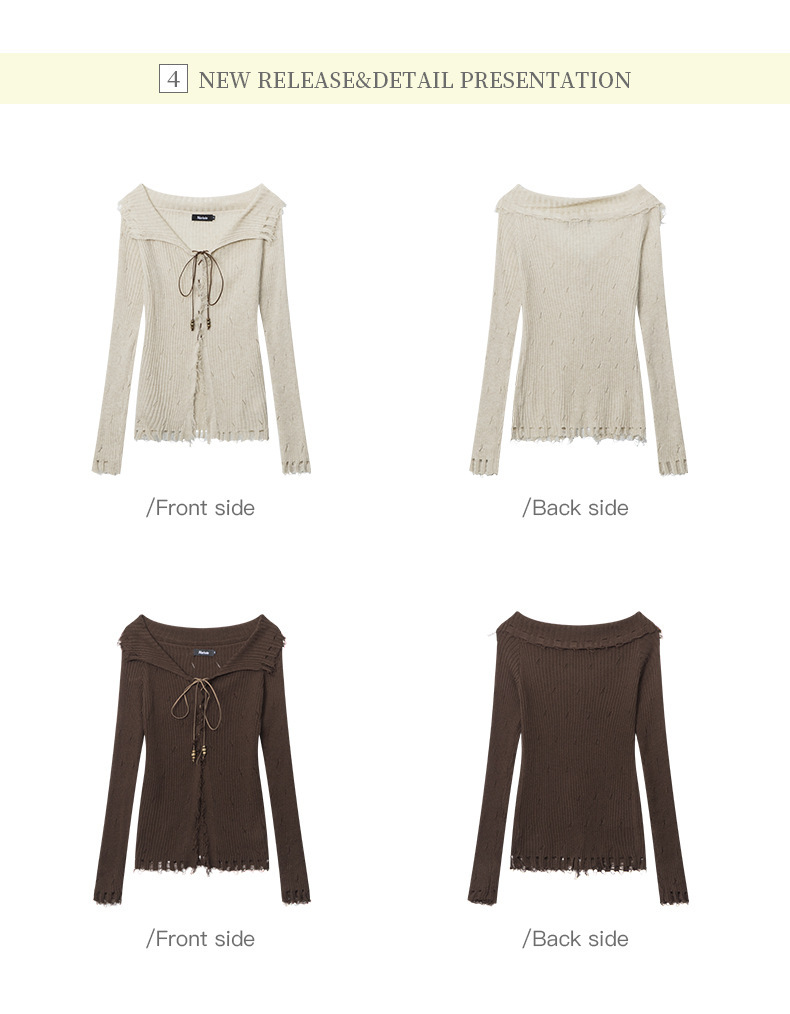 HeyHenry 유럽과 미국의 봄과 가을 뜨거운 소녀 스타일 패션 디자인 센스 스트랩 슬림 핏 슬리밍 긴 소매 스웨터