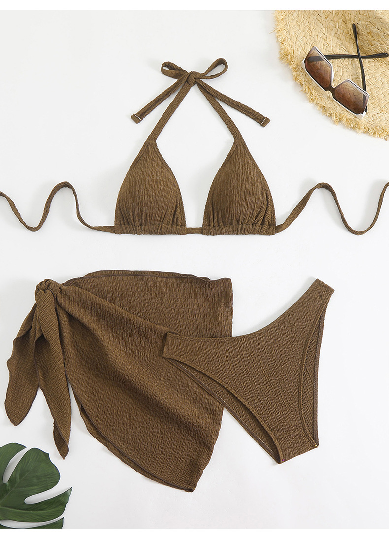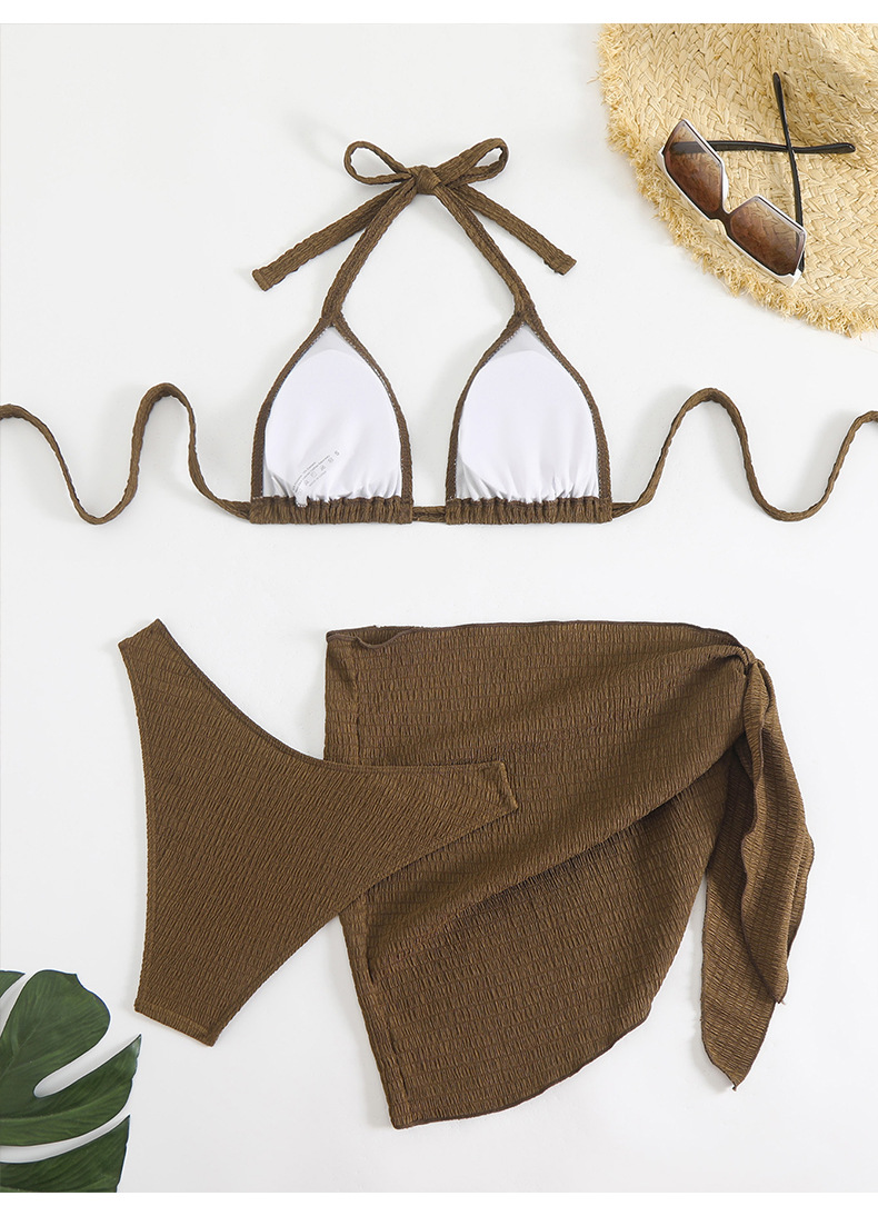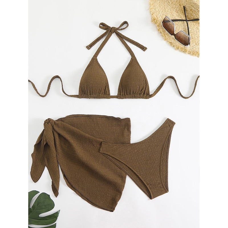 2025 유럽 및 미국 비키니 신상 단색 수영복 3피스 세트 끈 비치 드레스 해외 직구 여성용 비키니스토어 가기
