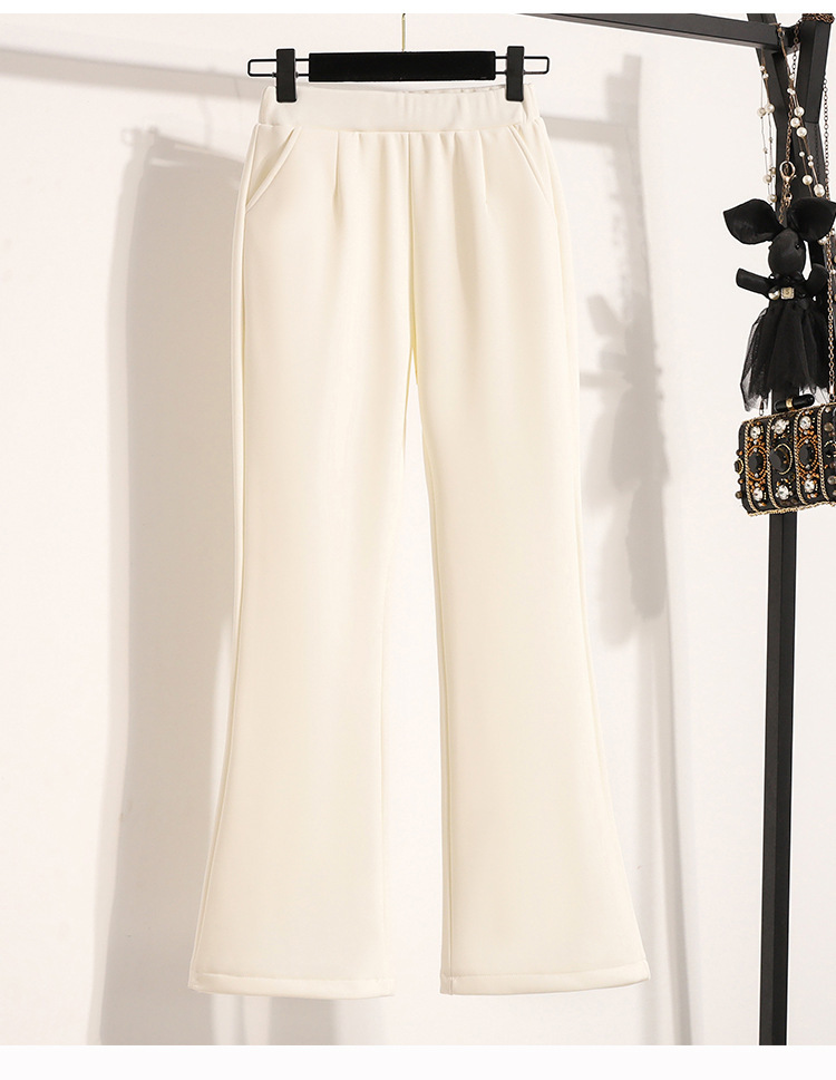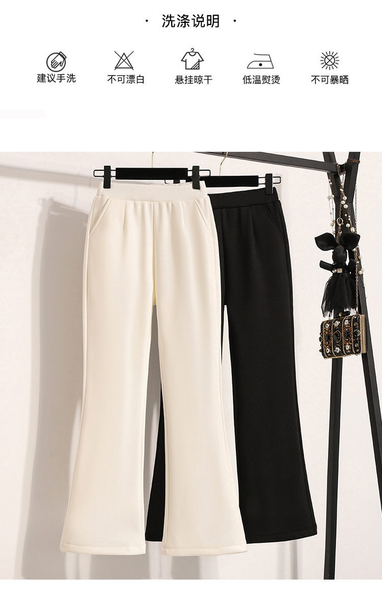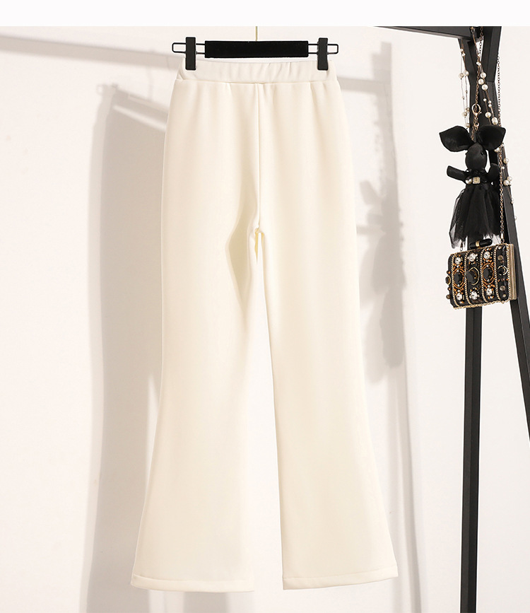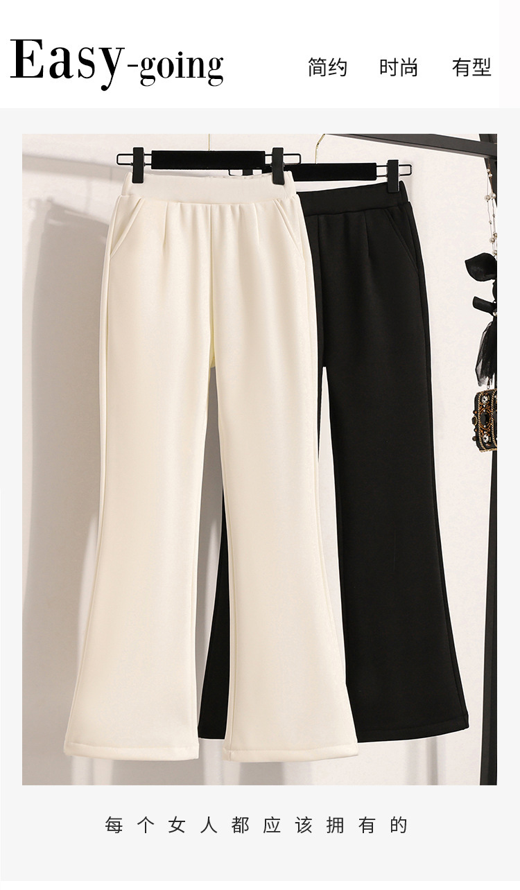 기모 두꺼운 플레어 바지 코튼 바지 가을 겨울 패션 높은 허리 더미 통통녀 넓은 다리 바지 플러스 사이즈 새로운 여성 바지스토어 가기