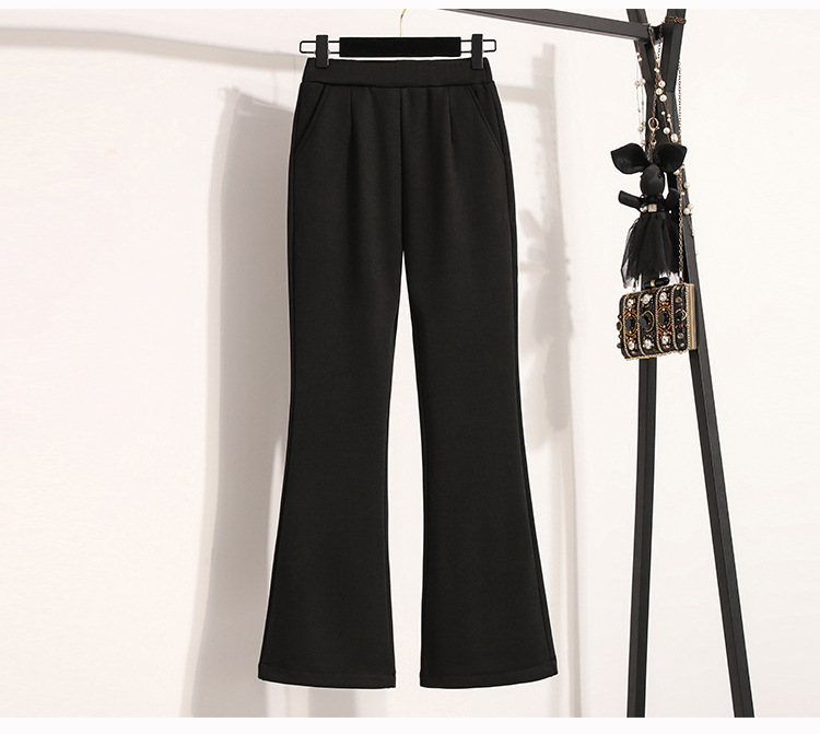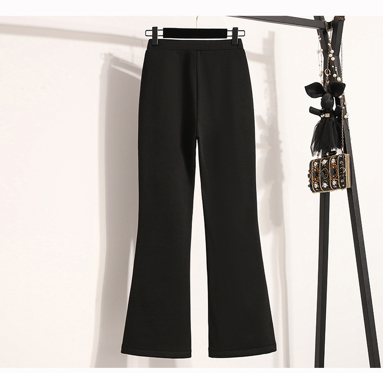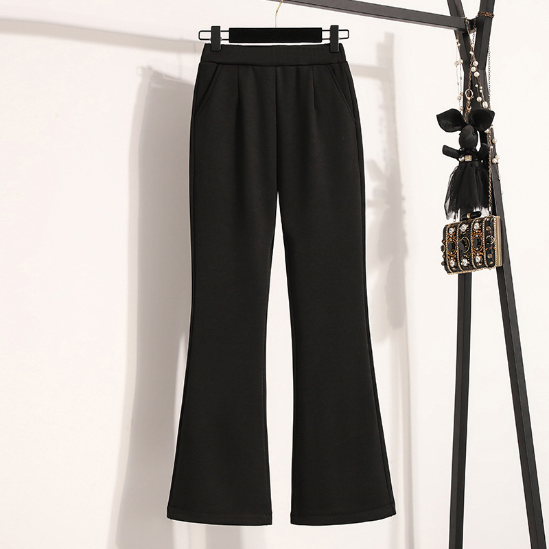 기모 두꺼운 플레어 바지 코튼 바지 가을 겨울 패션 높은 허리 더미 통통녀 넓은 다리 바지 플러스 사이즈 새로운 여성 바지